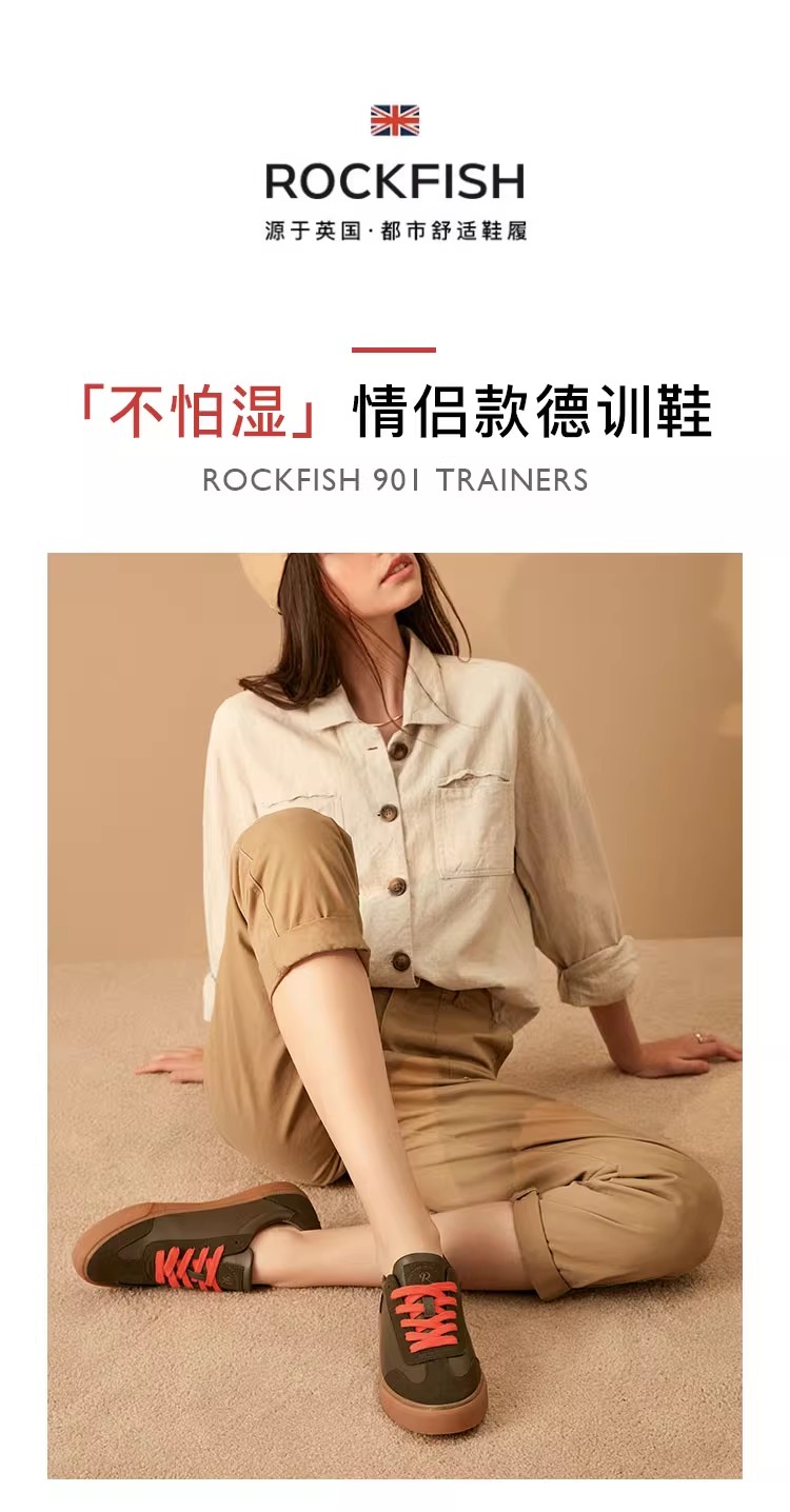 Rockfish901不怕湿复古单层皮面德训鞋男女同款休闲板鞋