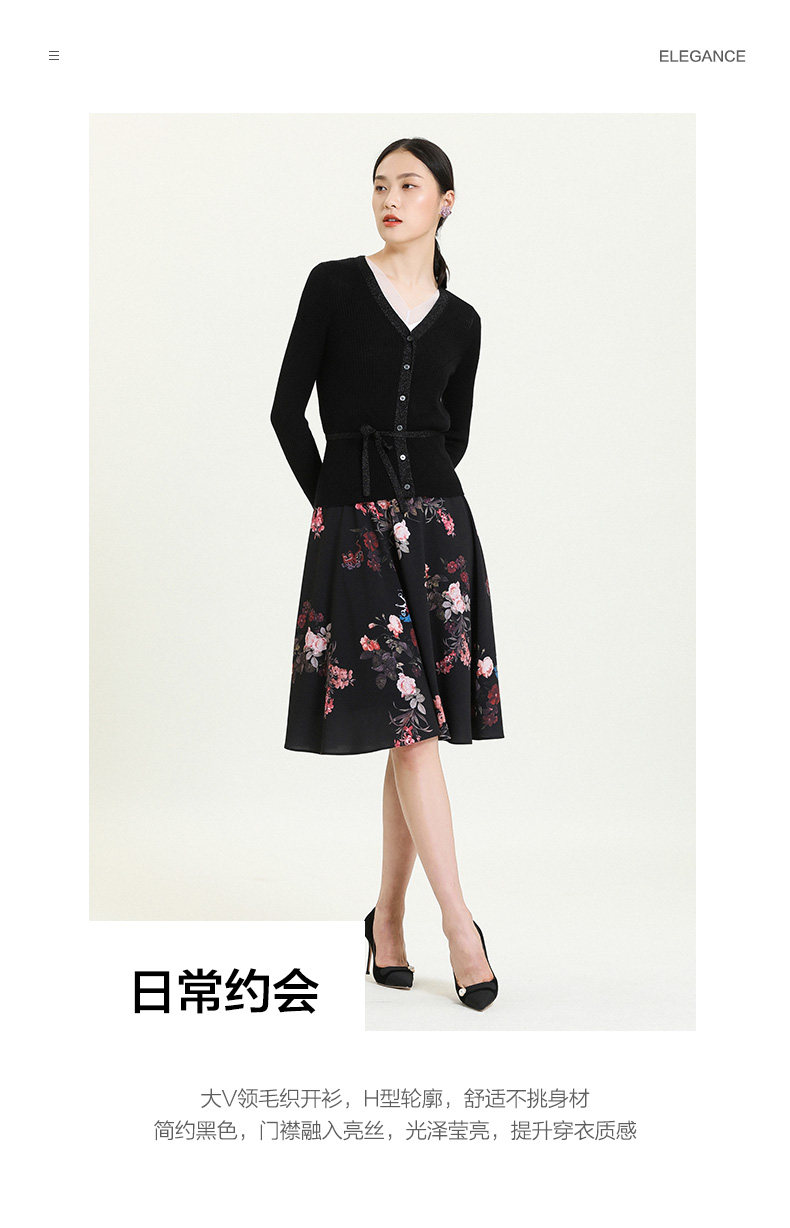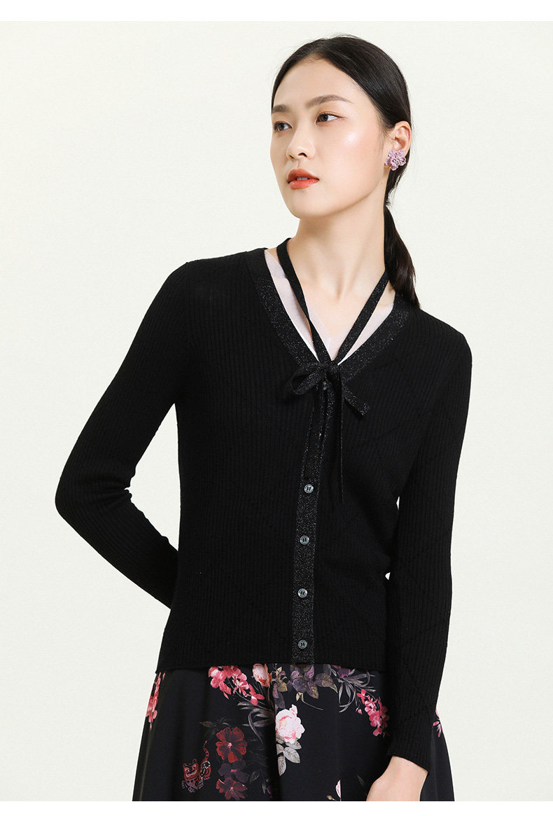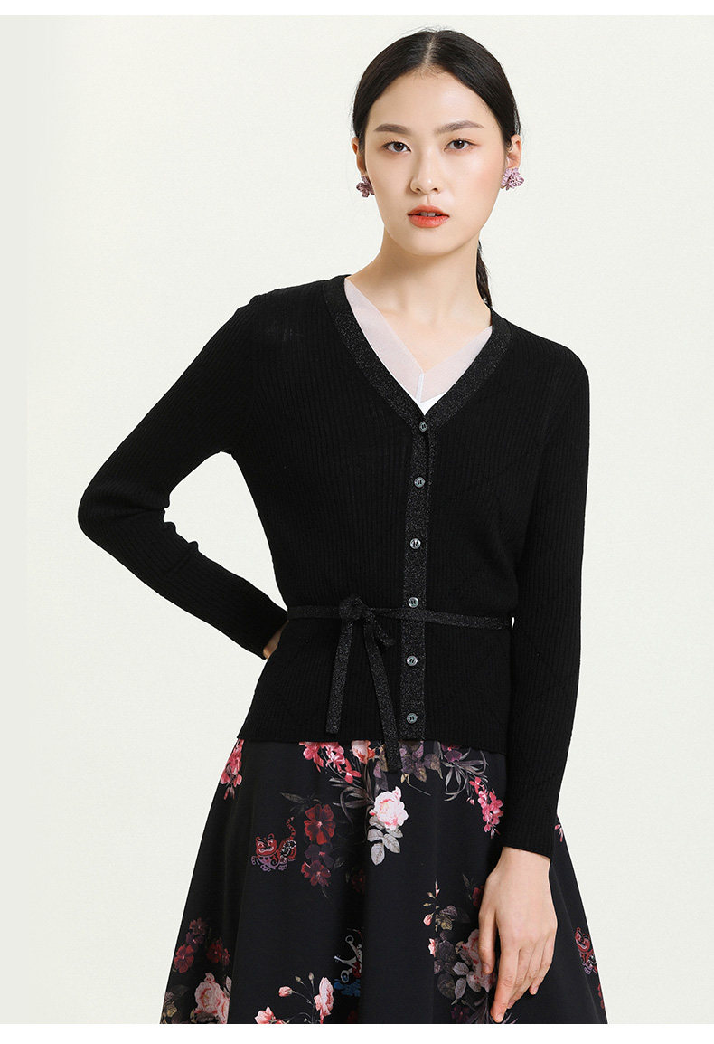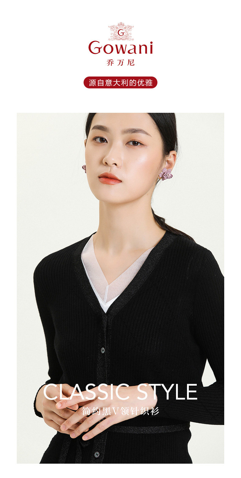 【两色可选】乔万尼早秋新款针织开衫女大V领收腰显瘦精致薄款舒适小开衫ES3M602