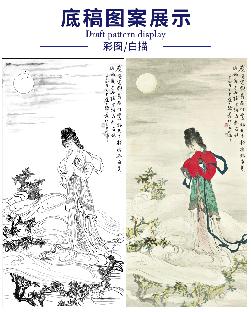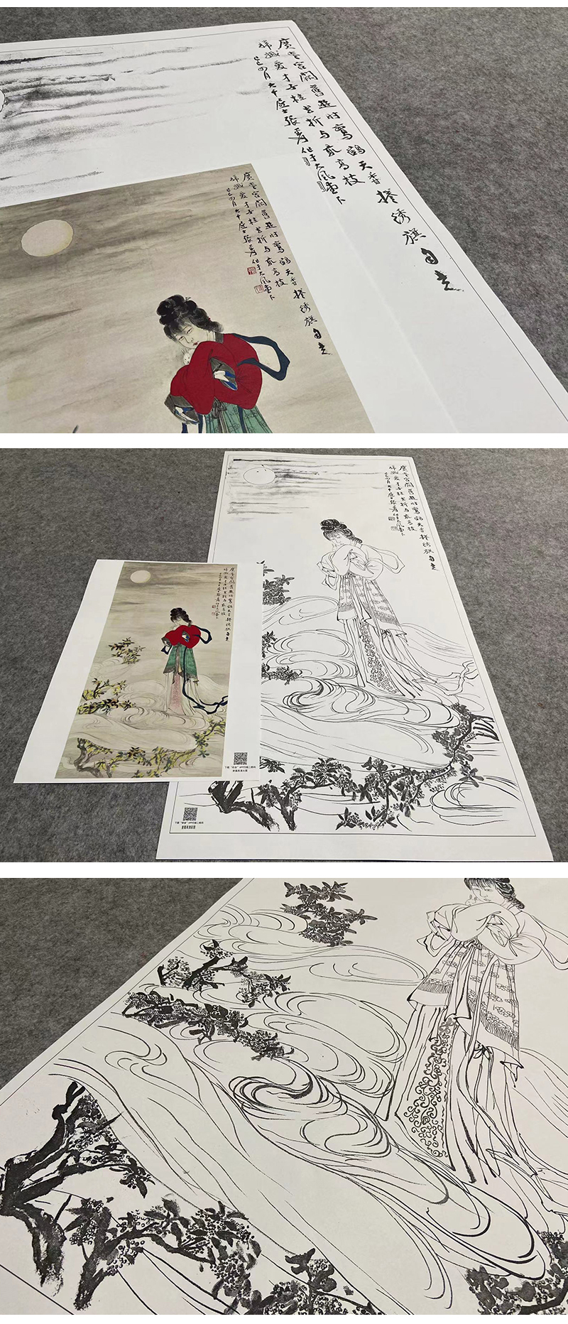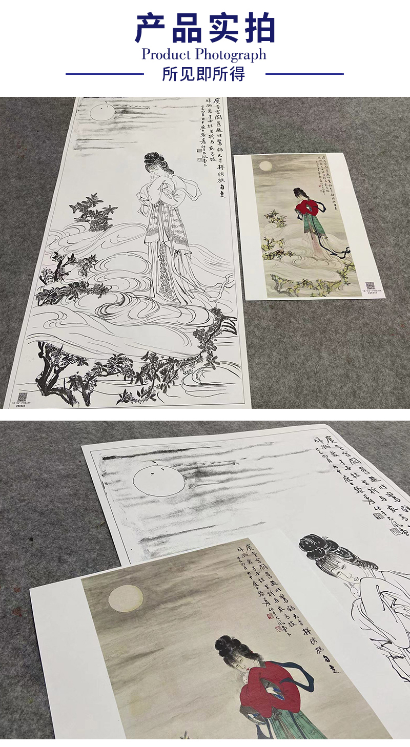 张大千竖幅工笔传统仕女人物白描底稿-QD49
