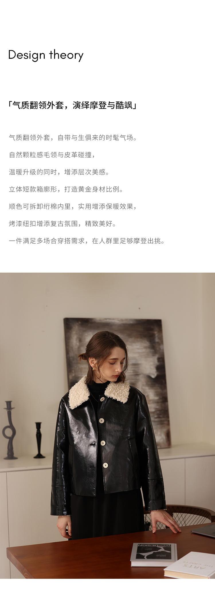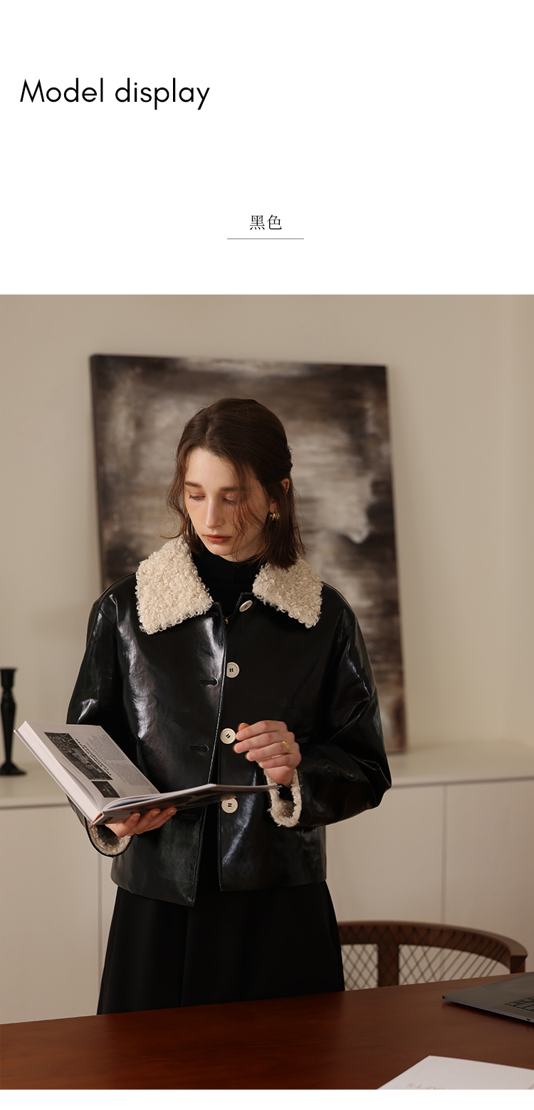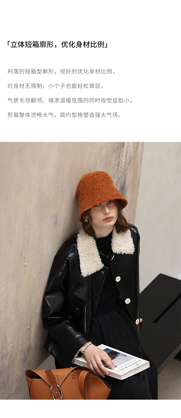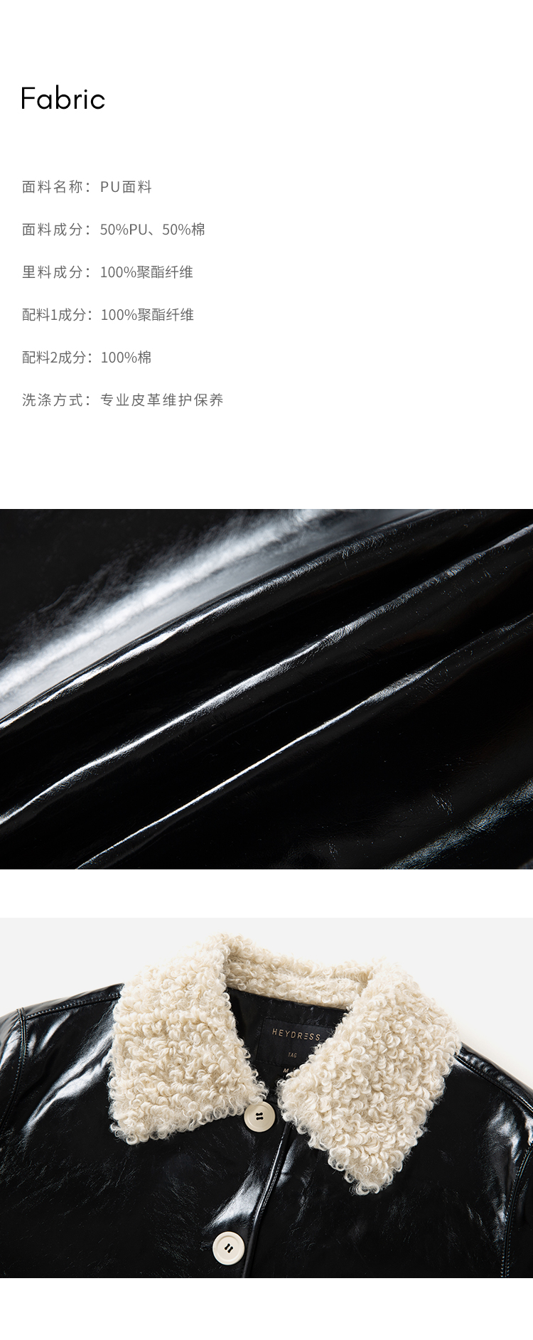 HeyDress加棉皮衣外套女冬季法式复古颗粒毛翻领保暖棉衣机车上衣