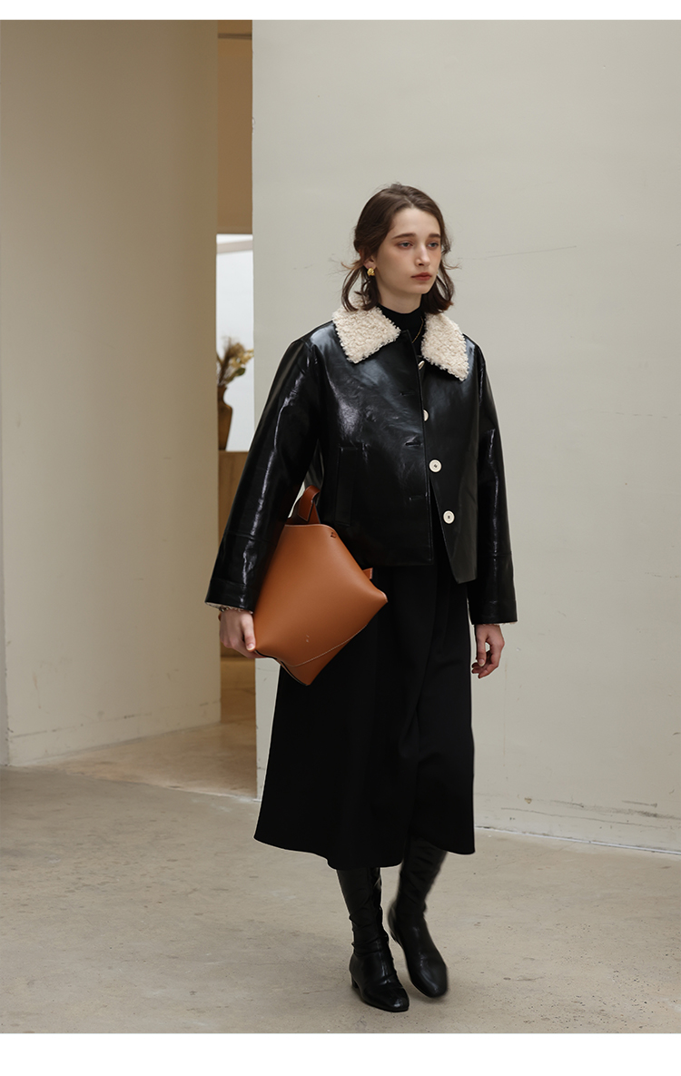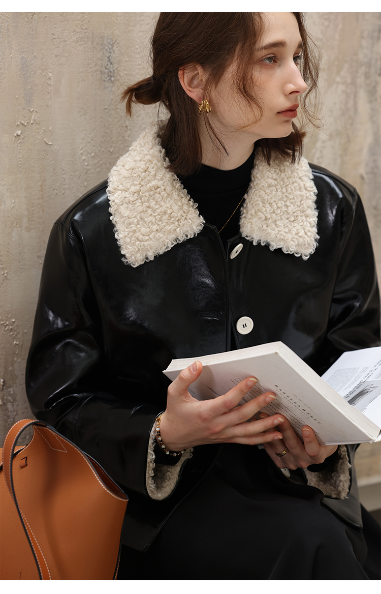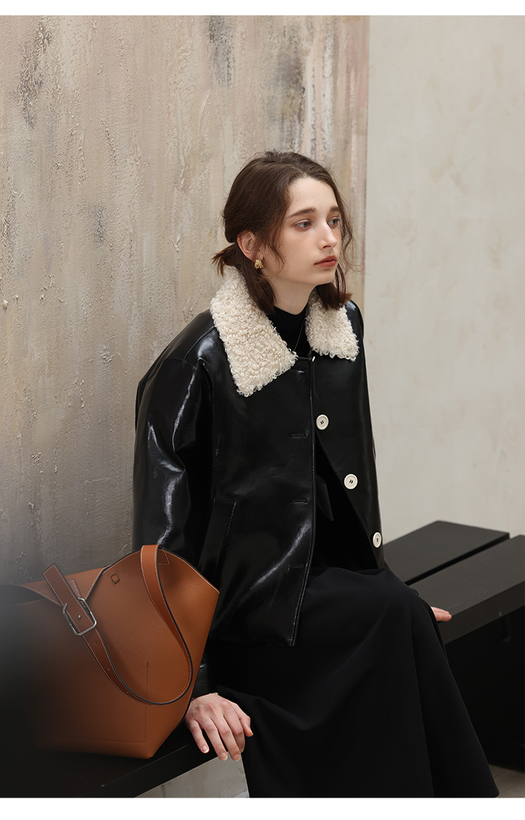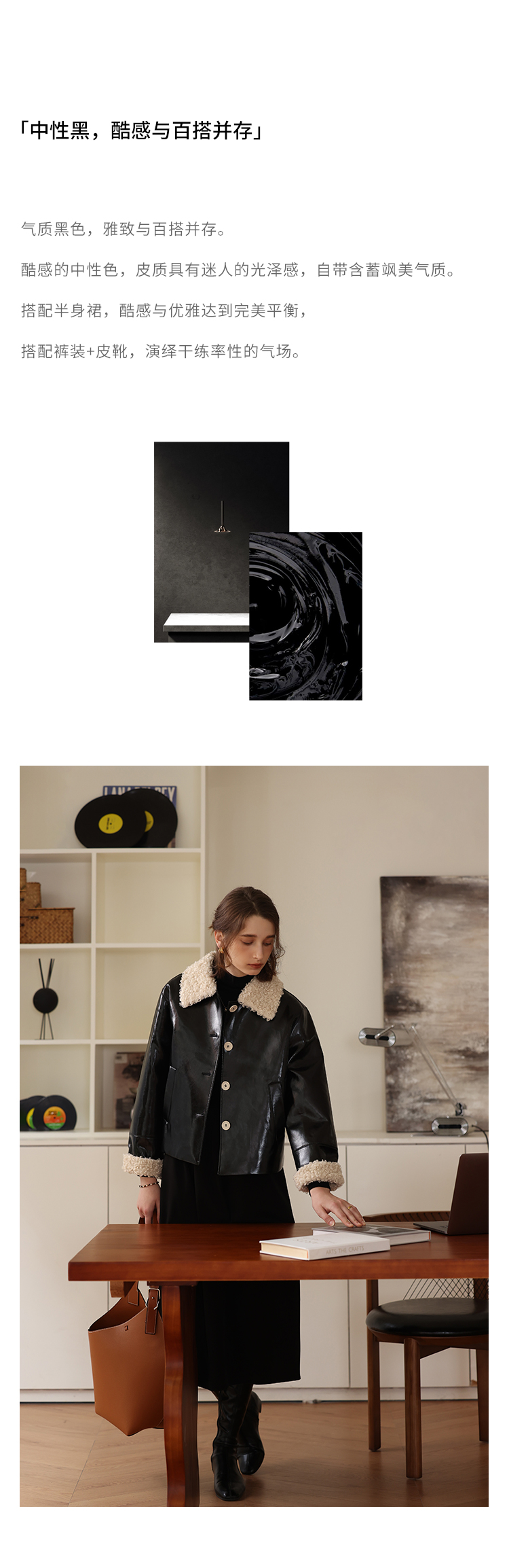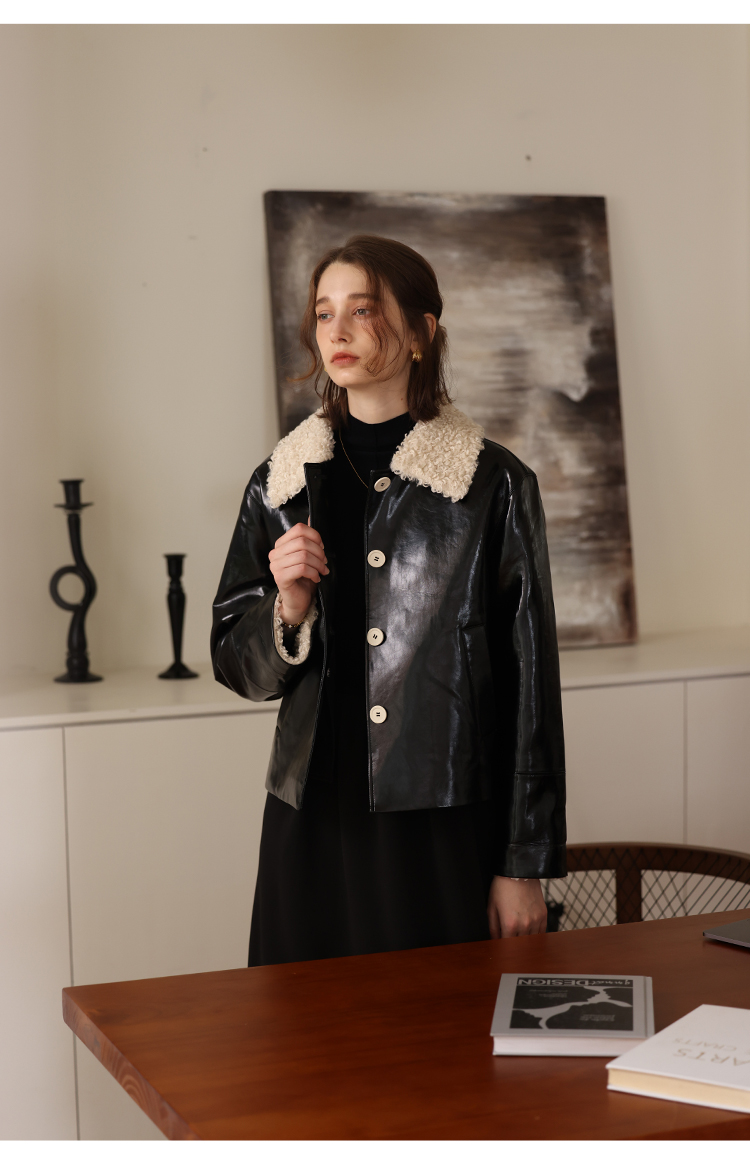 HeyDress加棉皮衣外套女冬季法式复古颗粒毛翻领保暖棉衣机车上衣