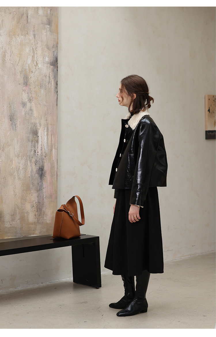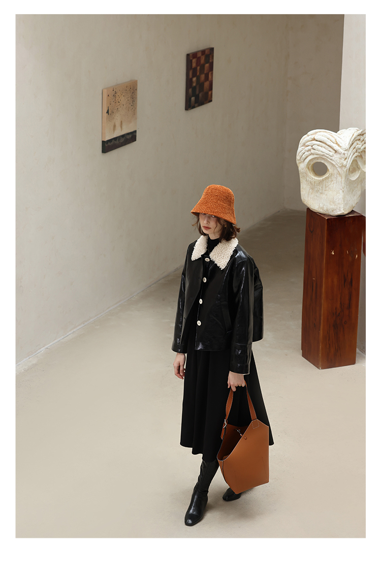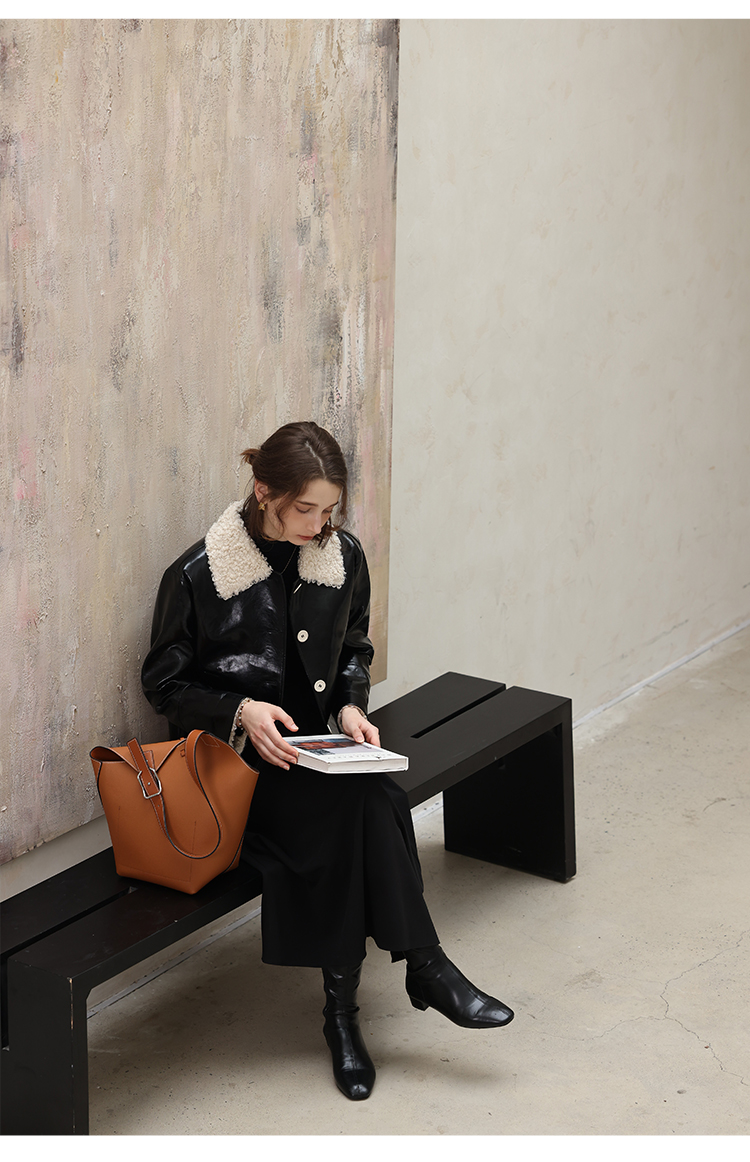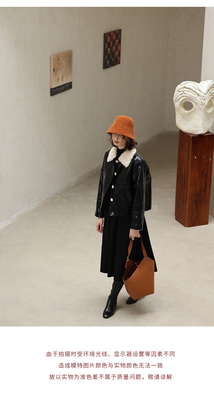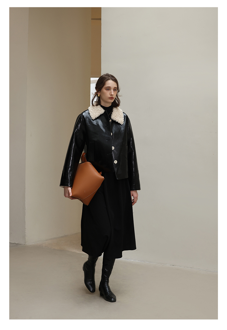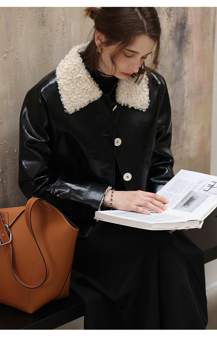 HeyDress加棉皮衣外套女冬季法式复古颗粒毛翻领保暖棉衣机车上衣