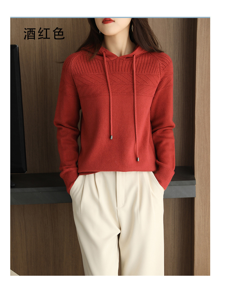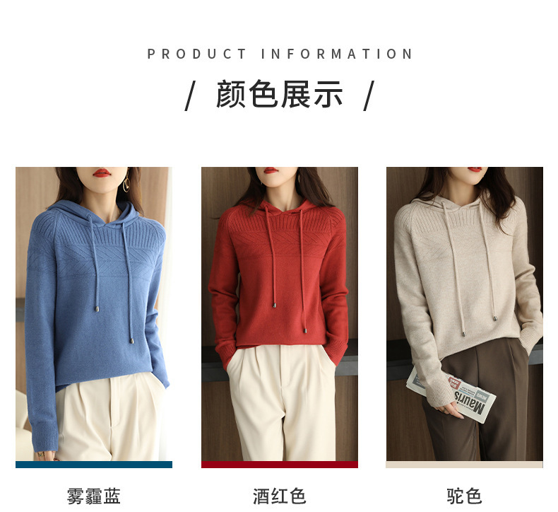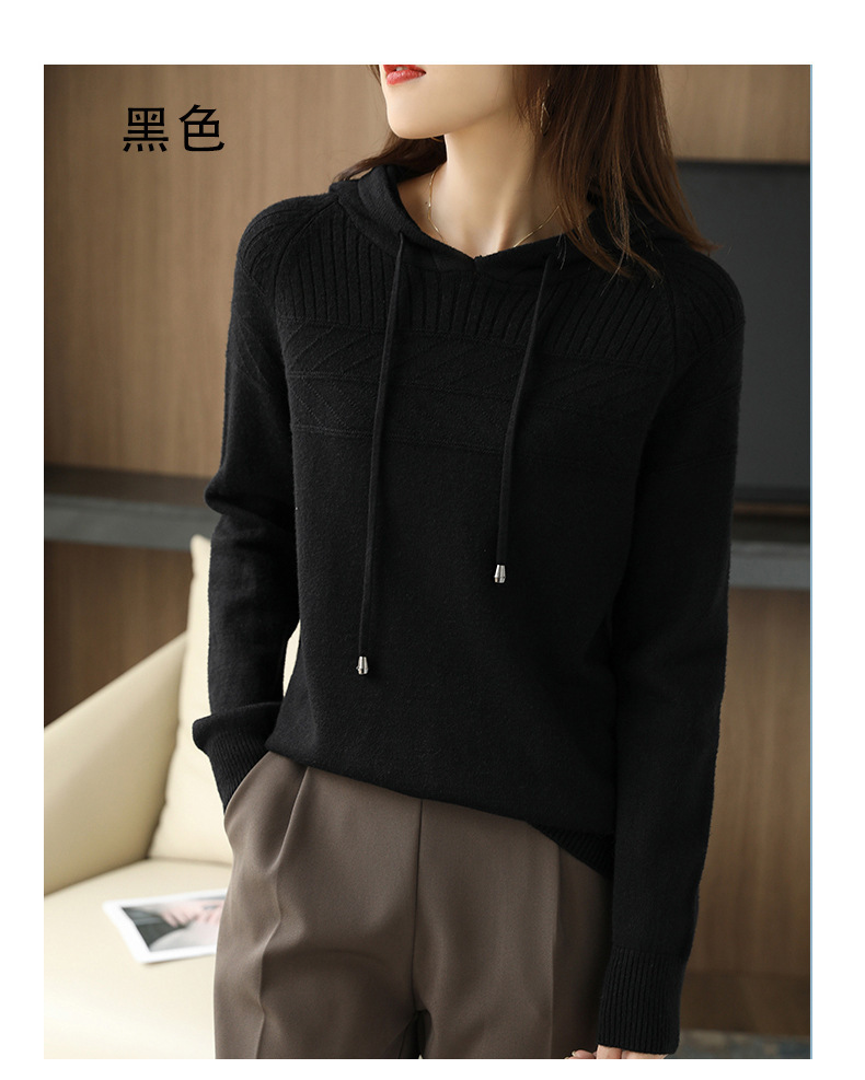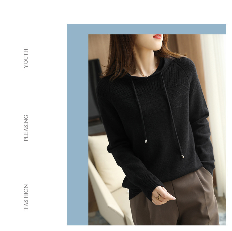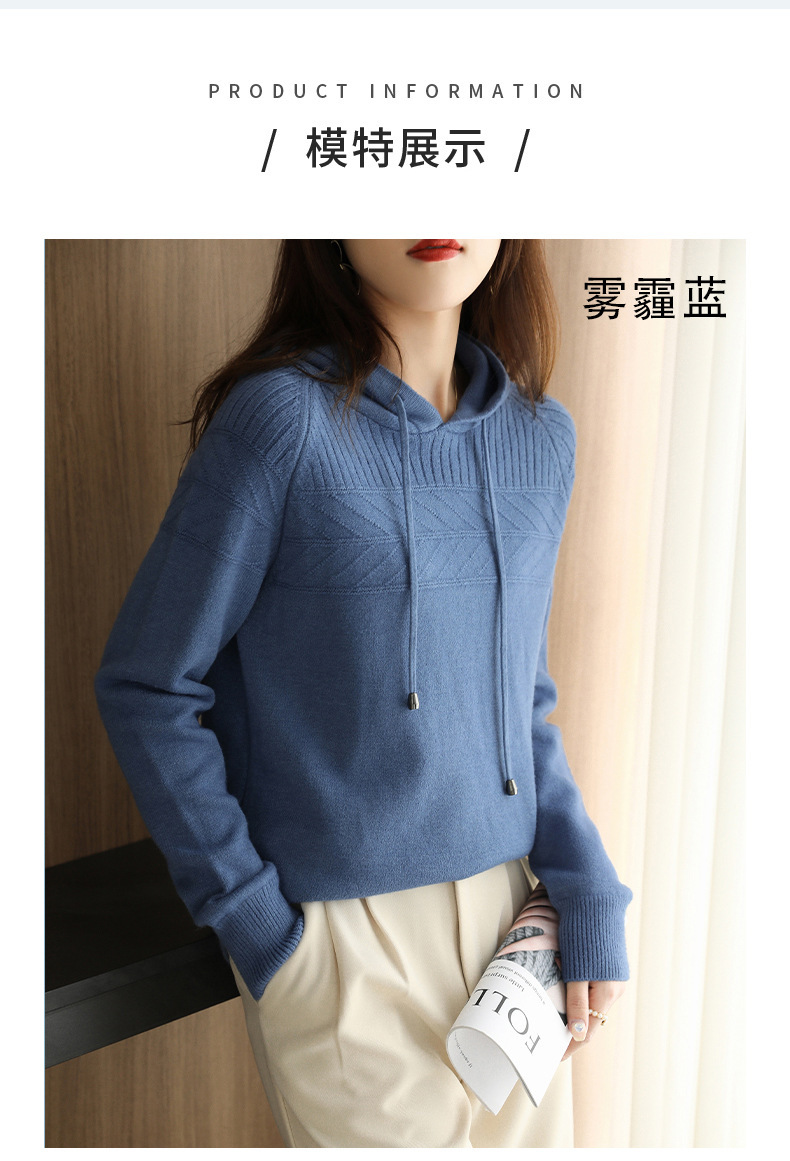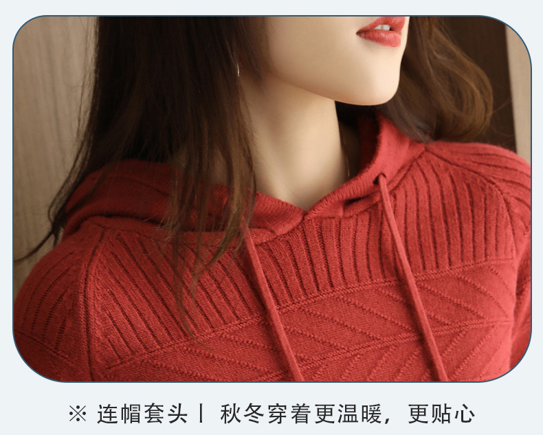 QH-XFT--128秋冬新款针织卫衣女连帽宽松长袖上衣百搭带帽毛衣打底衫短款