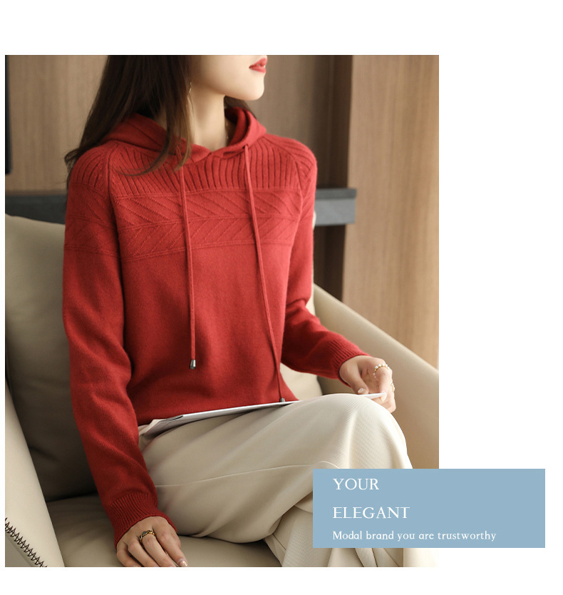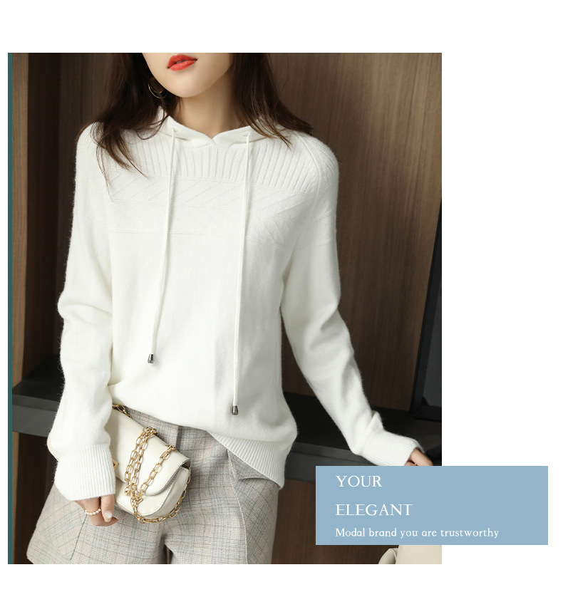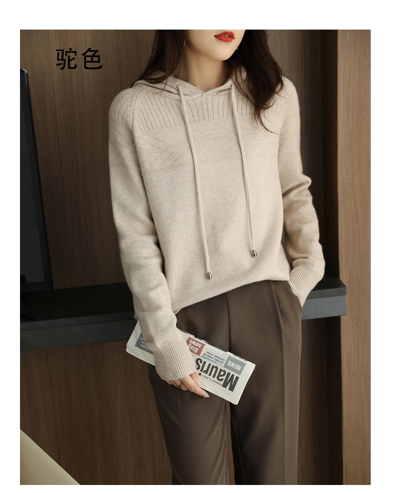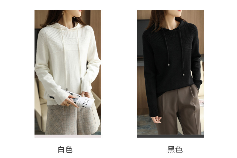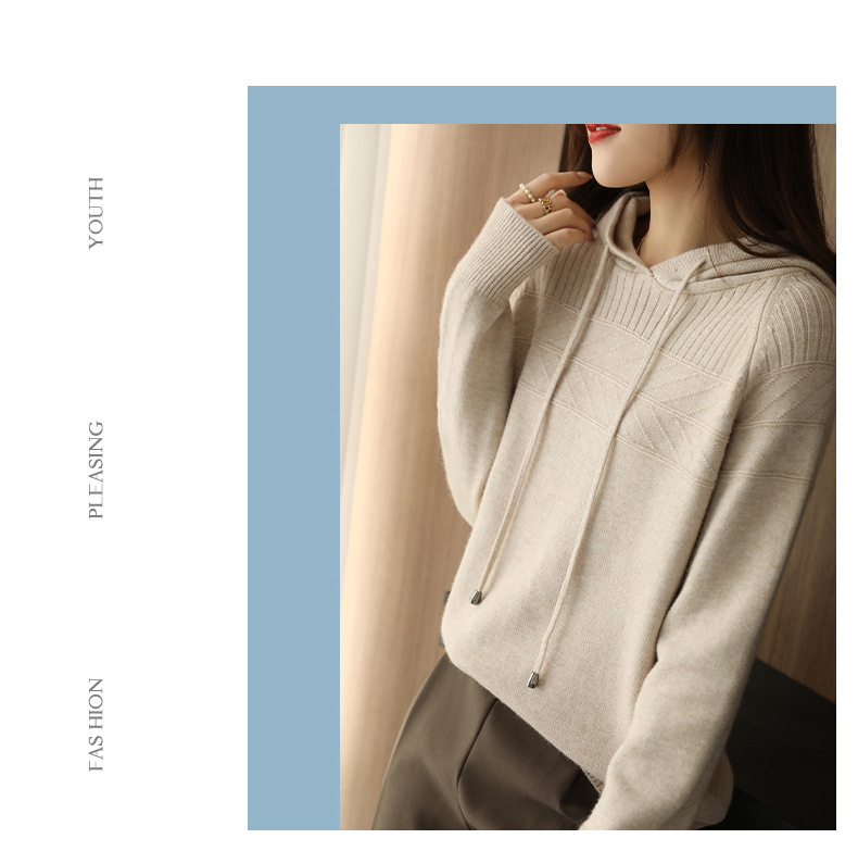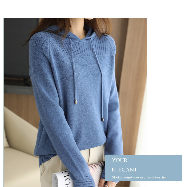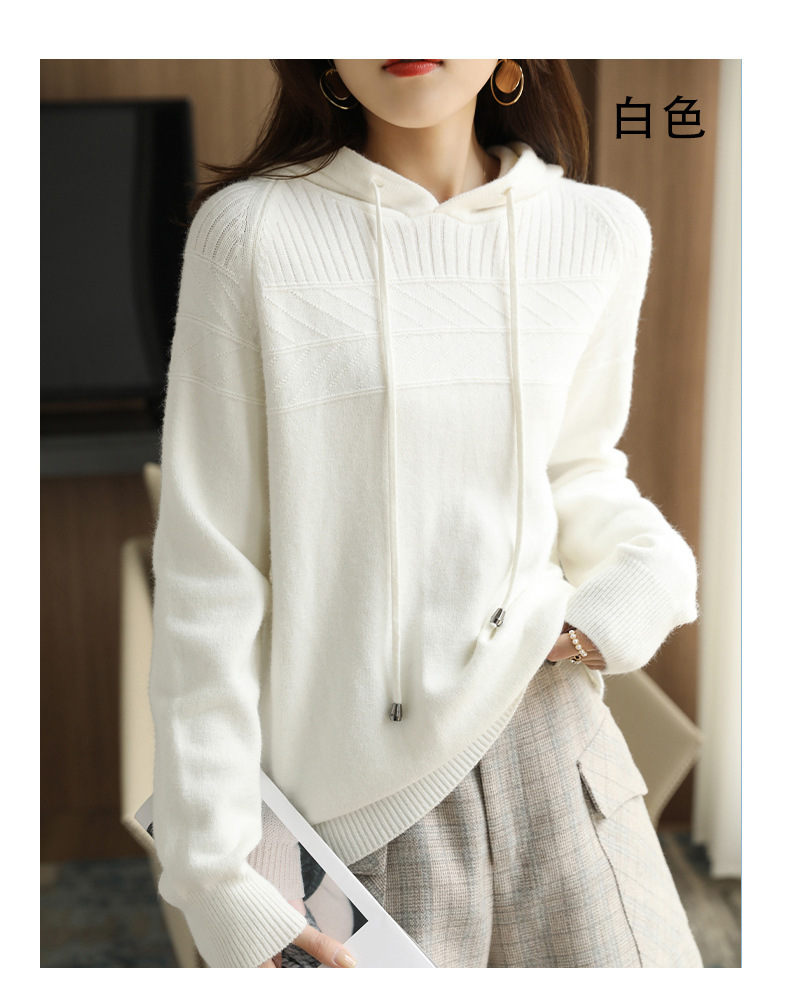 QH-XFT--128秋冬新款针织卫衣女连帽宽松长袖上衣百搭带帽毛衣打底衫短款