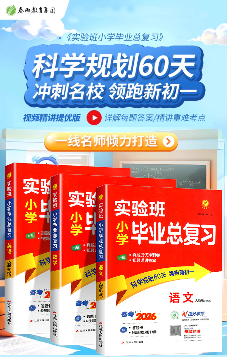 2026实验班小学毕业总复习语文数学英语人教版六年级小升初系统总复习资料包