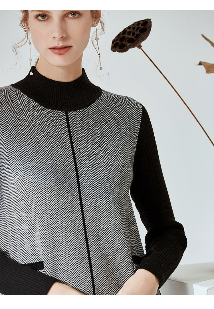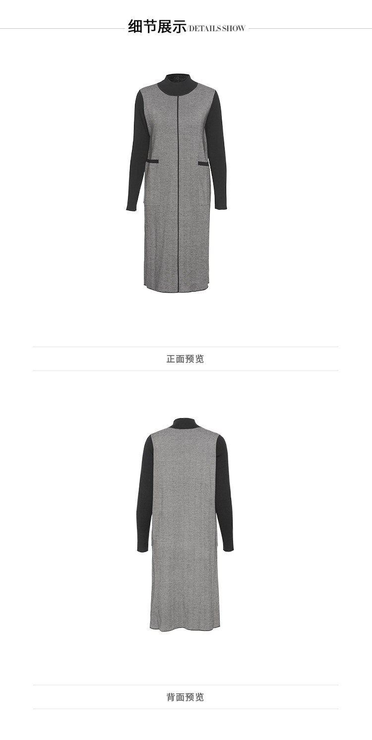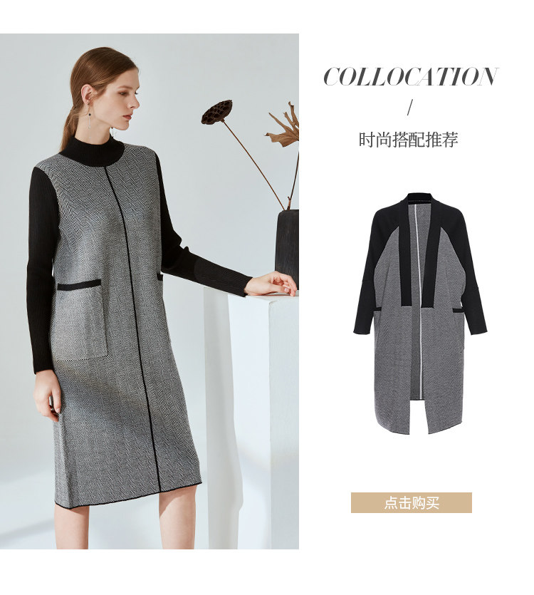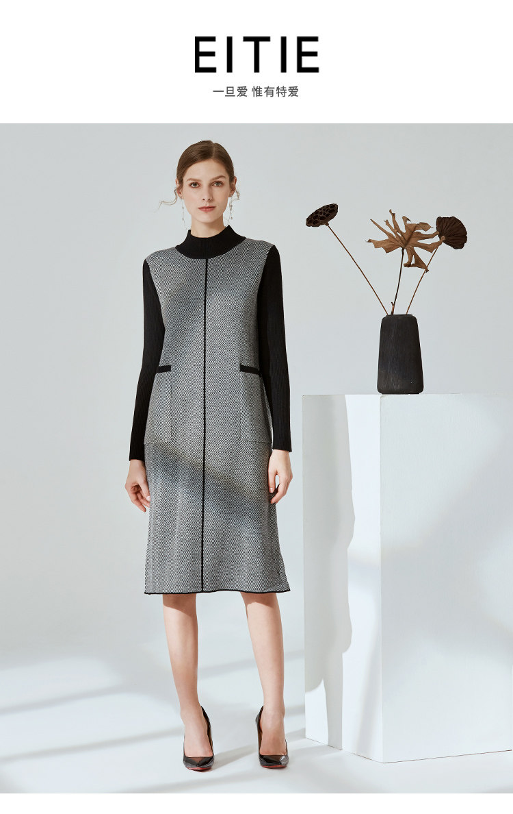 EITIE爱特爱新款通勤直筒显瘦半高领圆领针织衫女中长款6001726