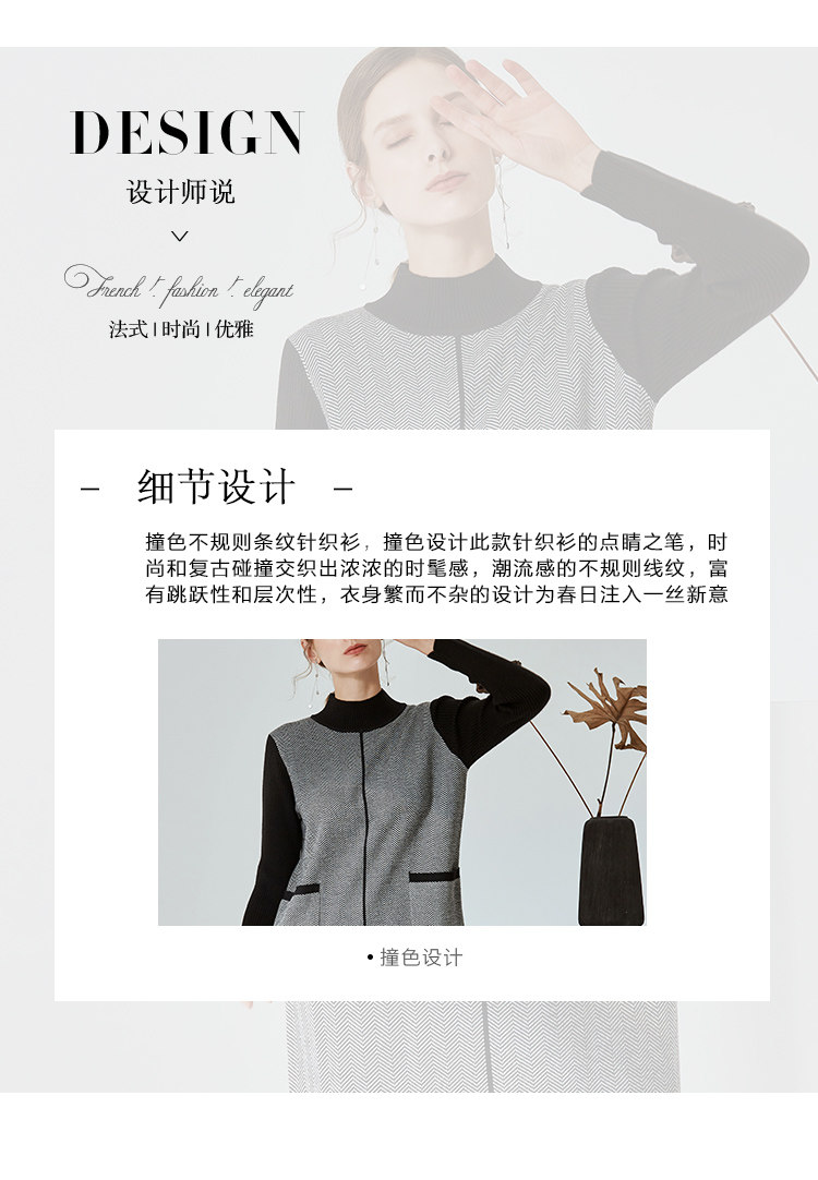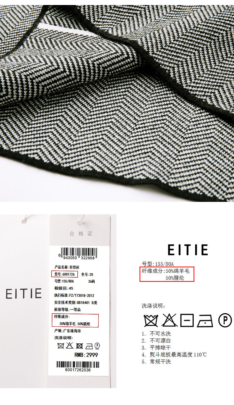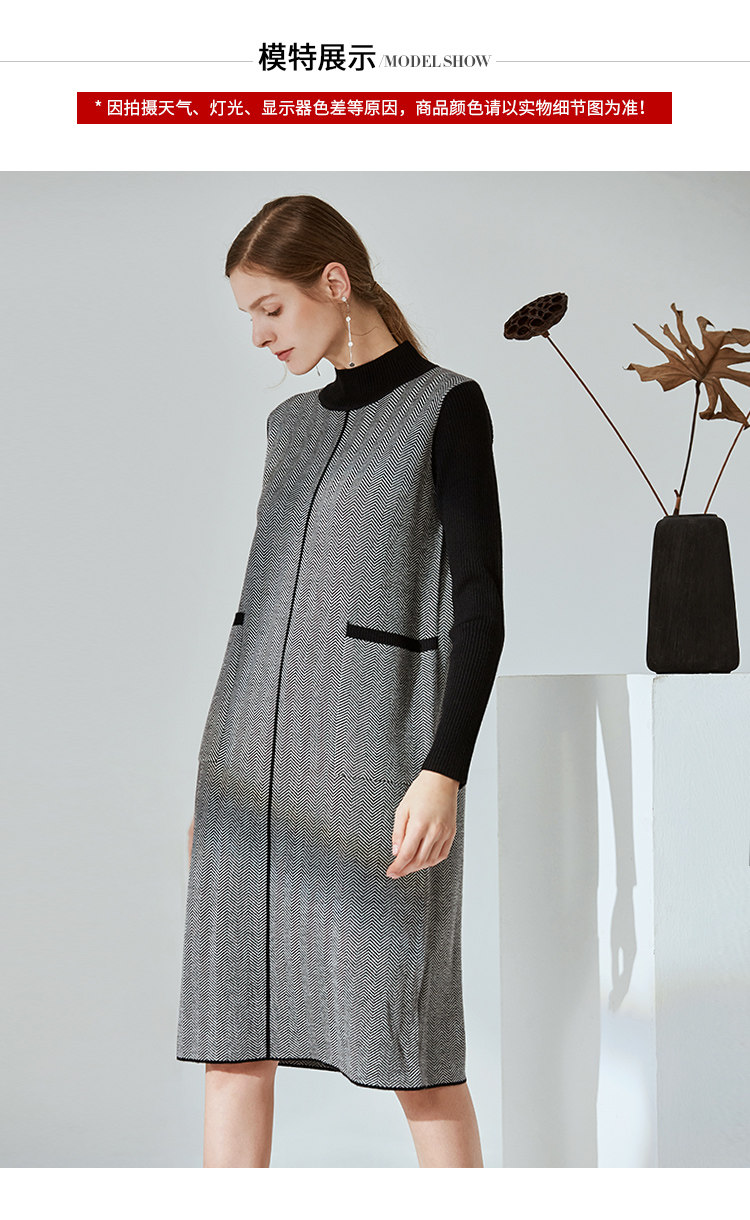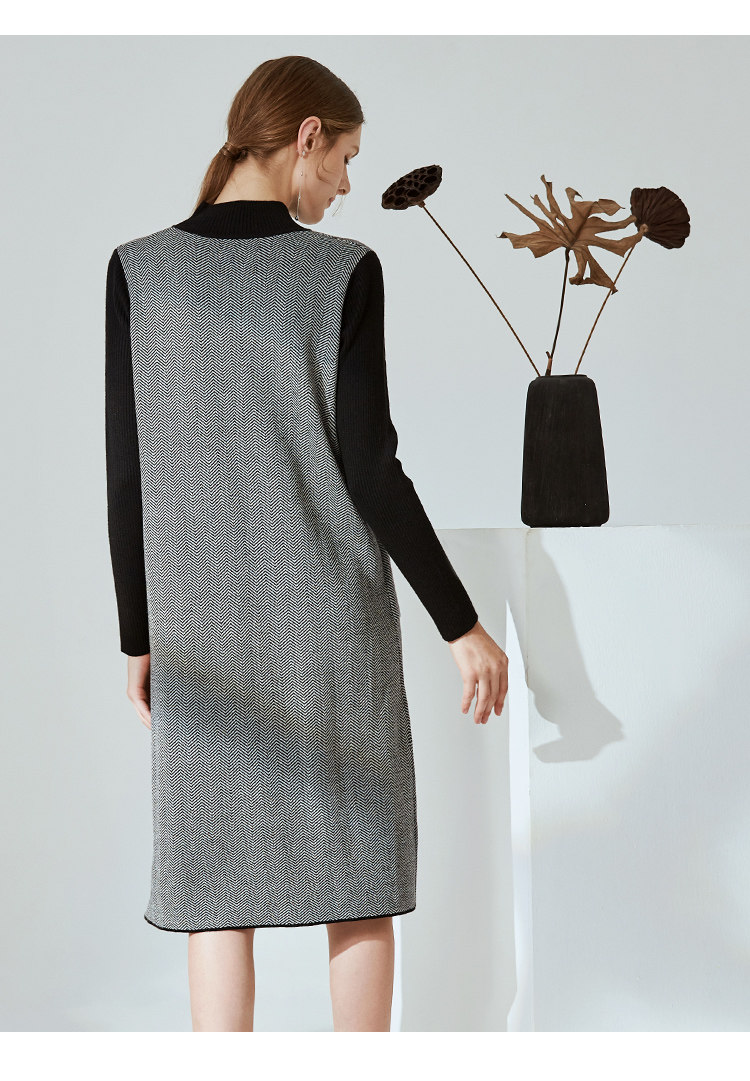 EITIE爱特爱新款通勤直筒显瘦半高领圆领针织衫女中长款6001726