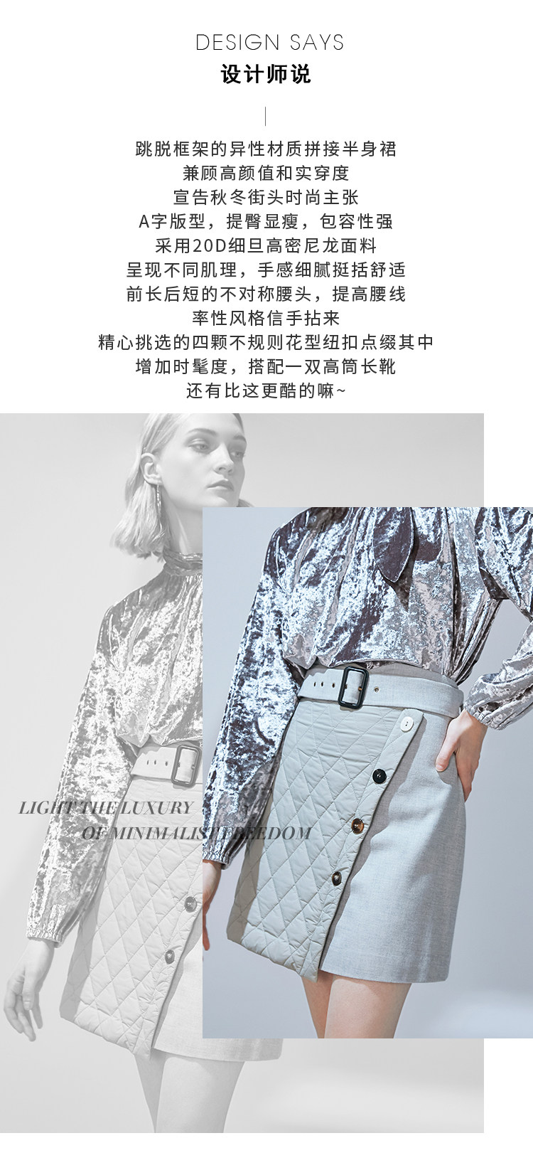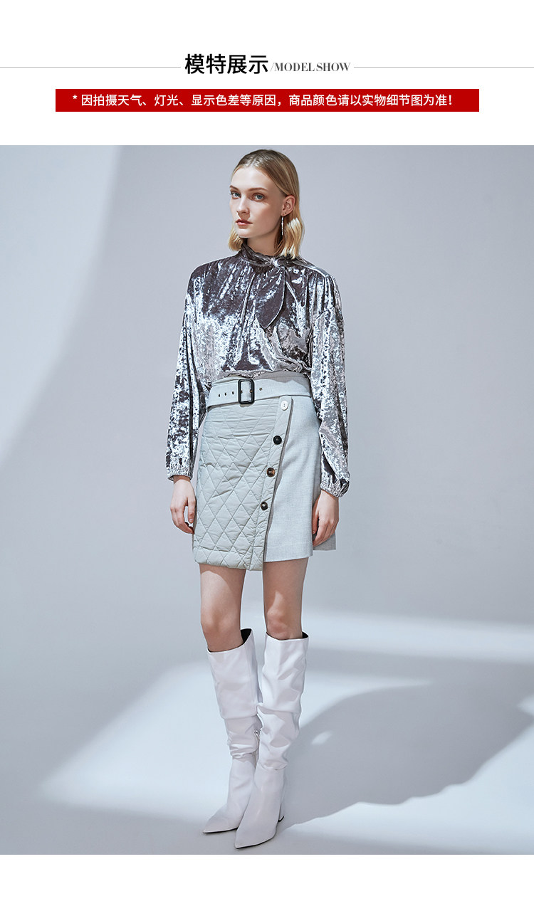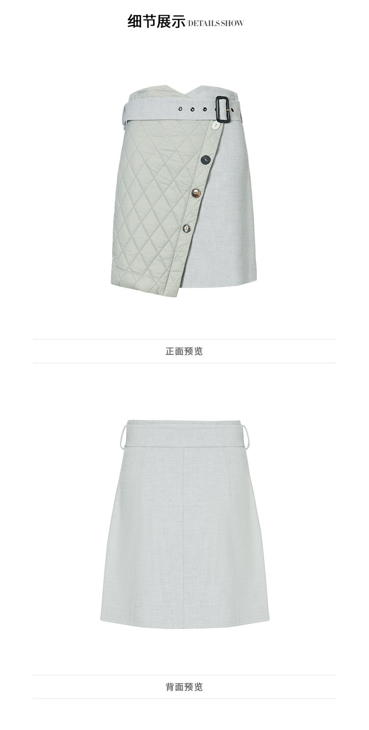 VIMAGE纬漫纪冬季新款时尚休闲夹棉格纹拼接包臀半身裙女裙V1406019