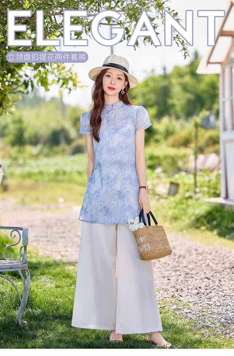 优雅时尚气质复古,立领提花甜美显瘦两件套裤HR-WQE2616MY