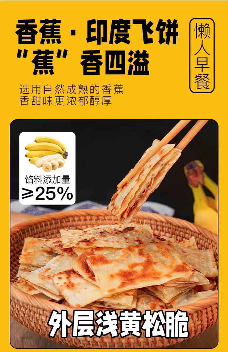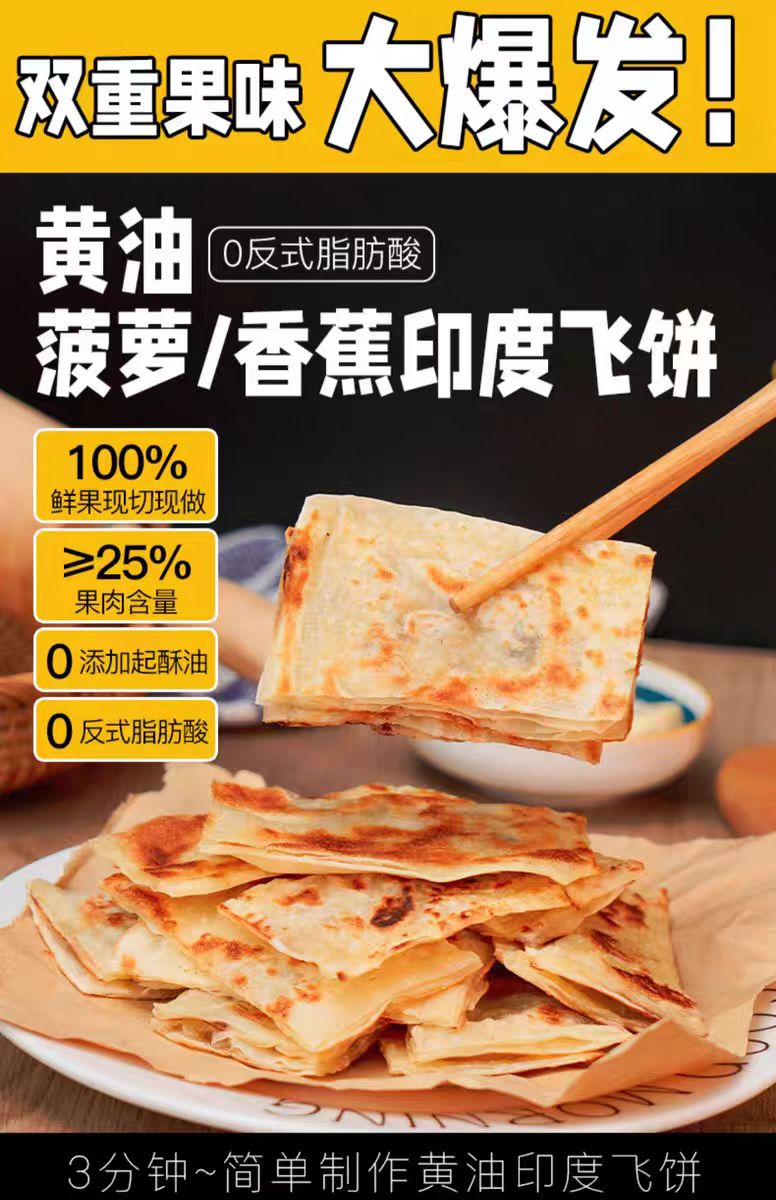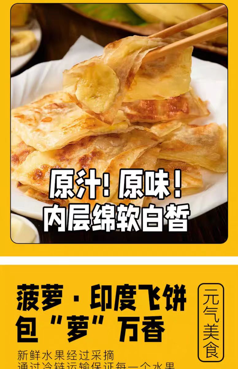 【代餐精选】黄油印度飞饼 天然果肉馅 进口安佳动物黄油 0起酥油0反式脂肪酸 外皮酥脆 香蕉 菠萝两种口味