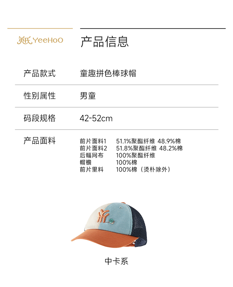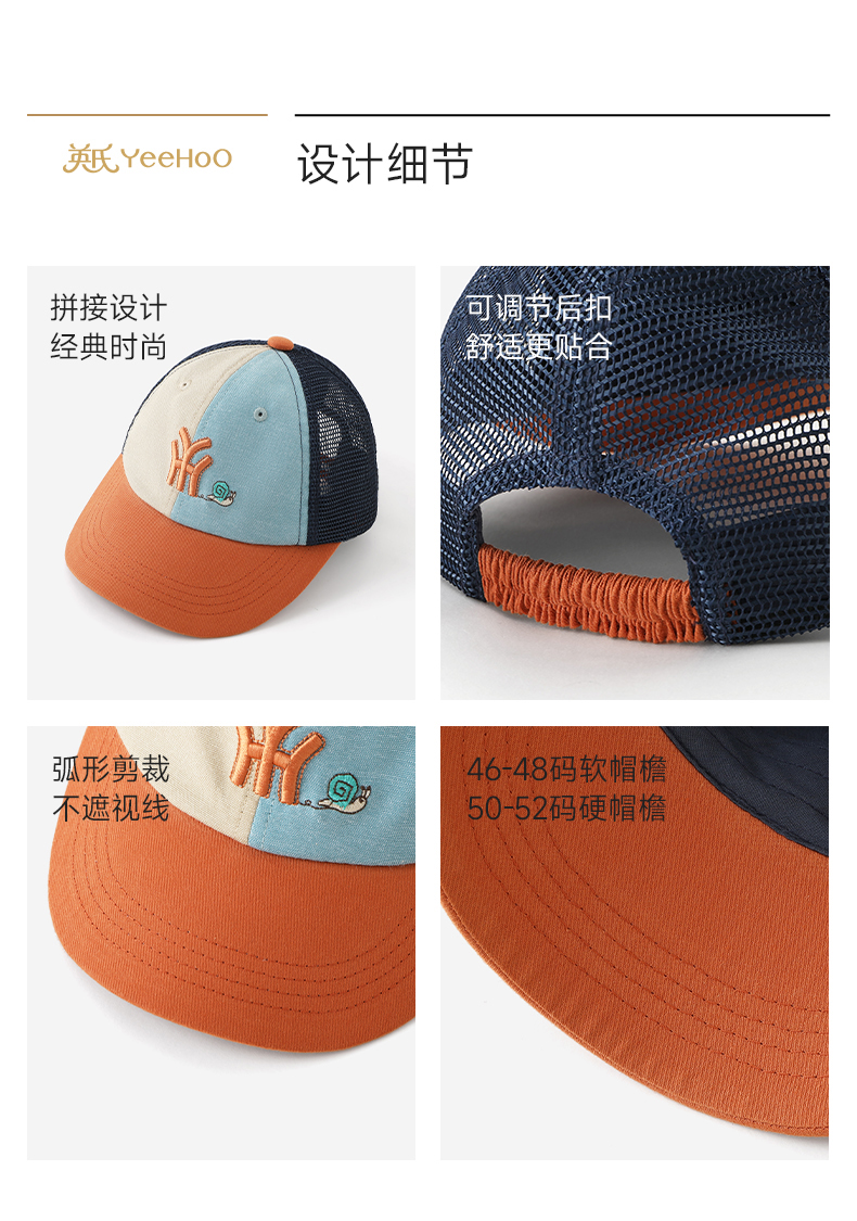 英氏儿童帽子夏季棒球帽时尚宝宝户外鸭舌帽男