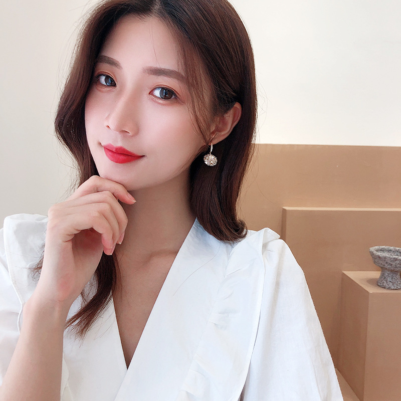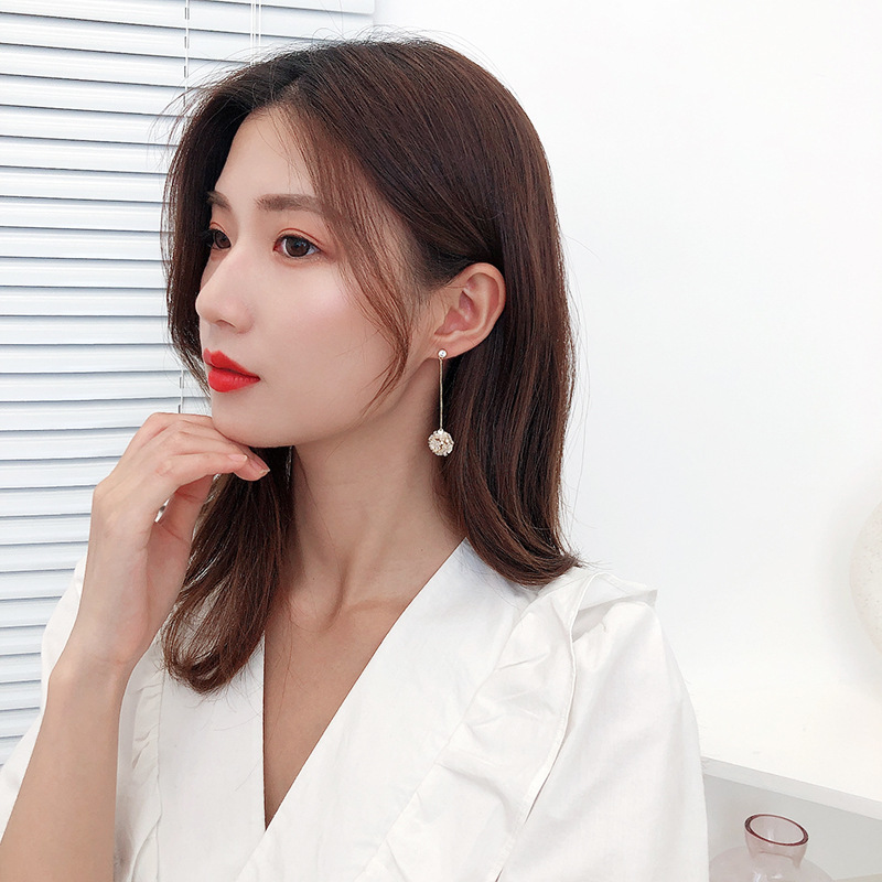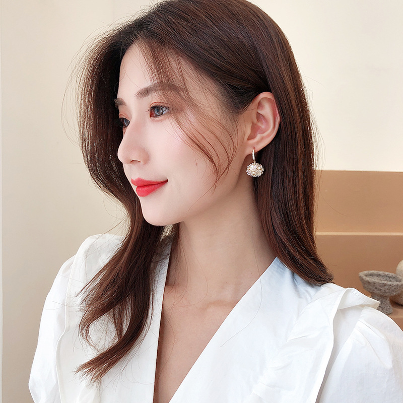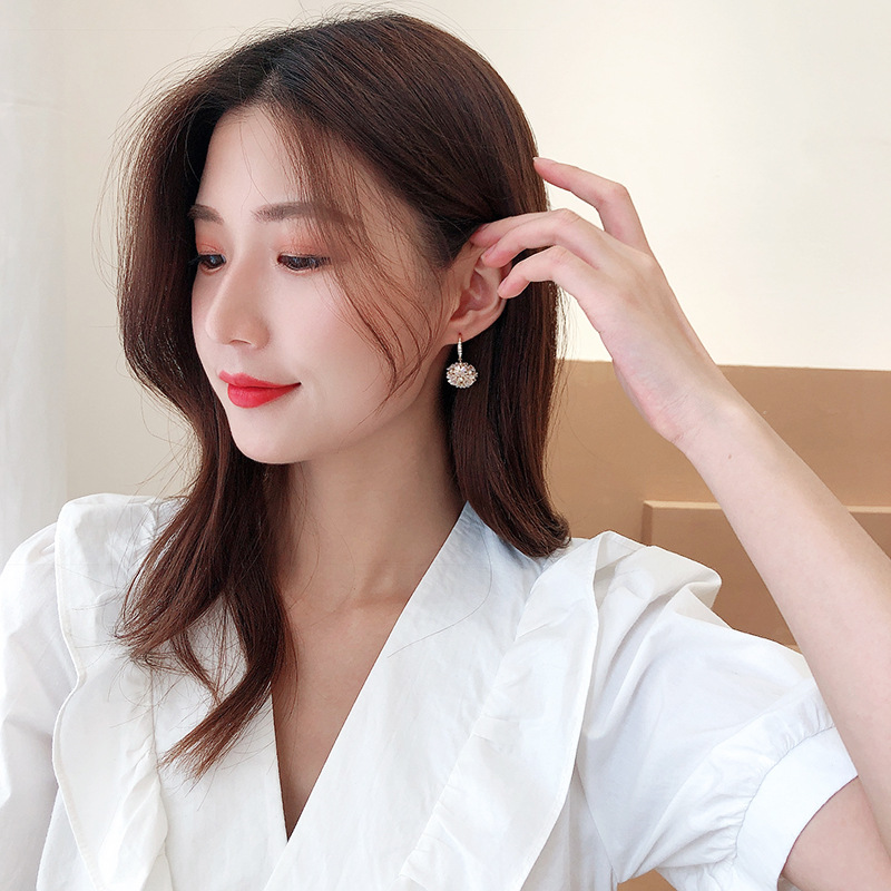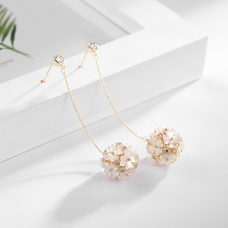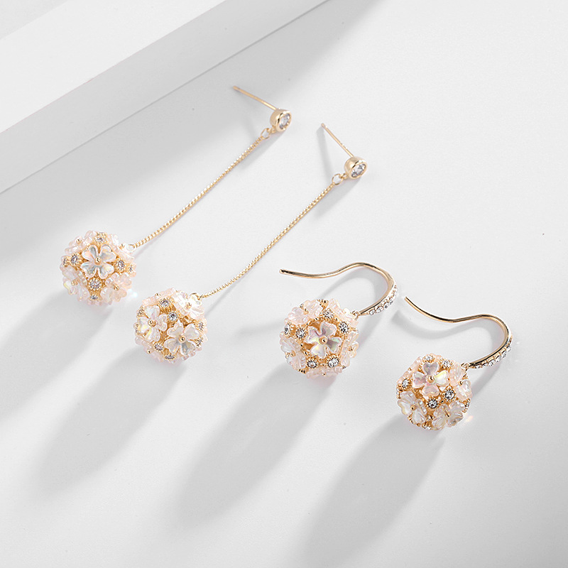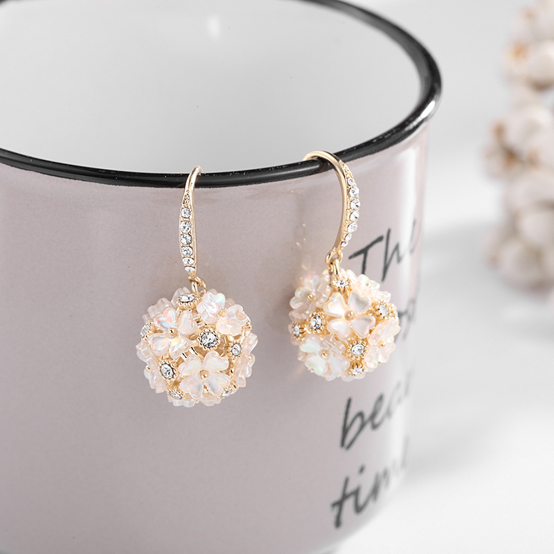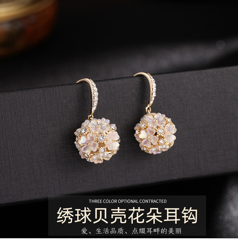 可爱花球个性简约银针气质贝壳花朵耳饰LY