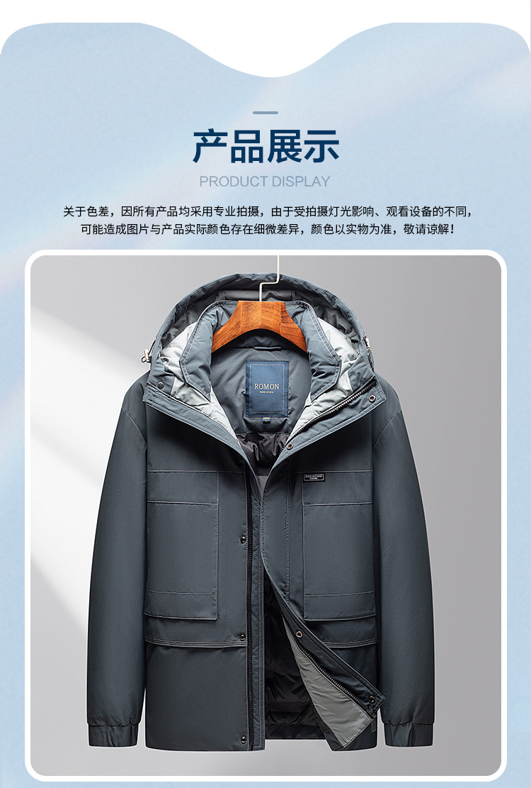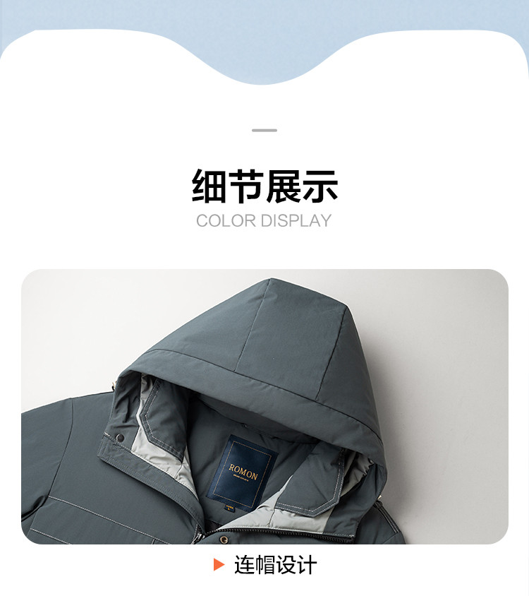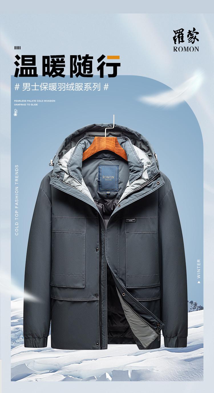 【90鸭绒】罗蒙冬季连帽羽绒服男士保暖时尚百搭冬装厚款休闲工装羽绒外套