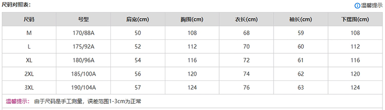 门襟填充物:100%聚酯纤维