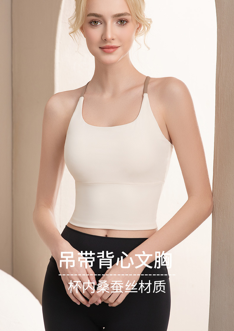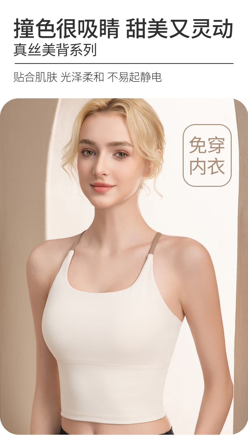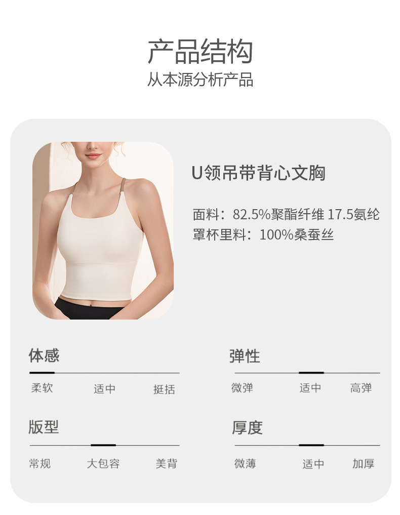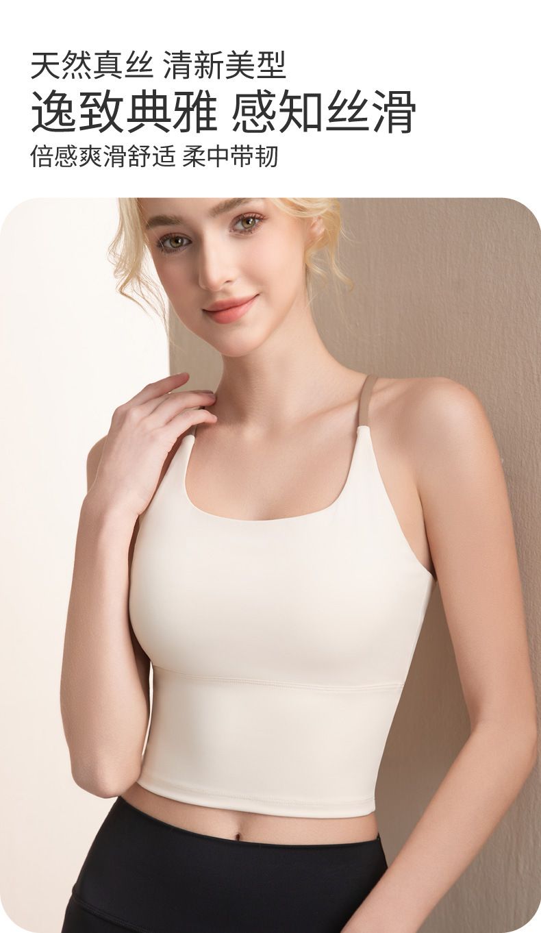 雀说 运动吊带背心文胸无钢圈内里纯桑蚕丝内衣2613