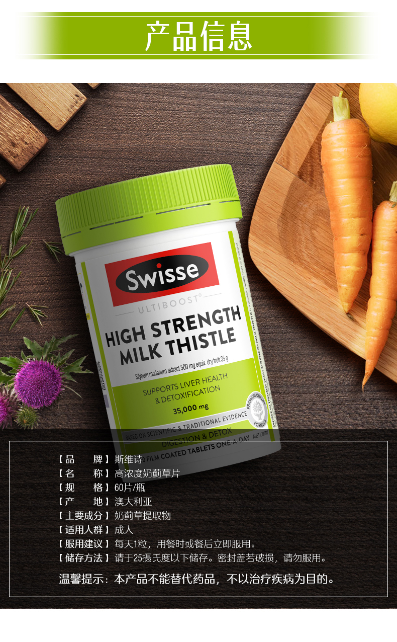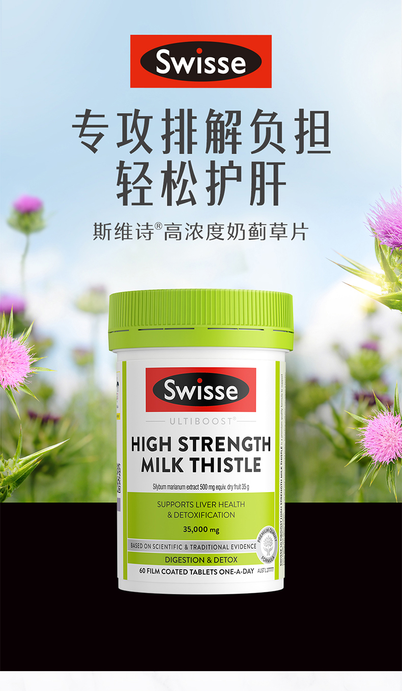澳洲Swisse斯维诗高浓度奶蓟草片60片 加强版护肝片