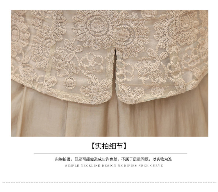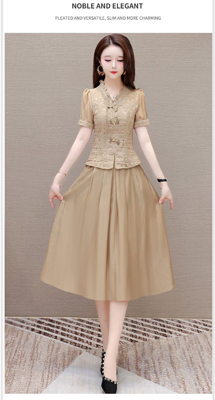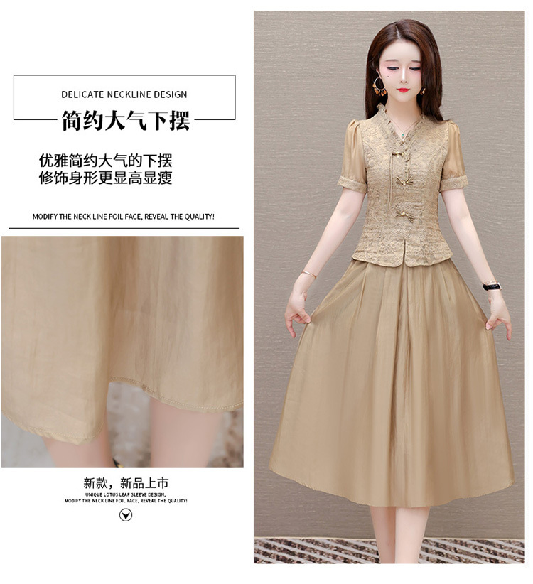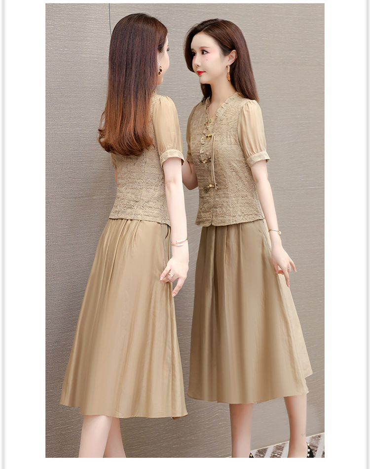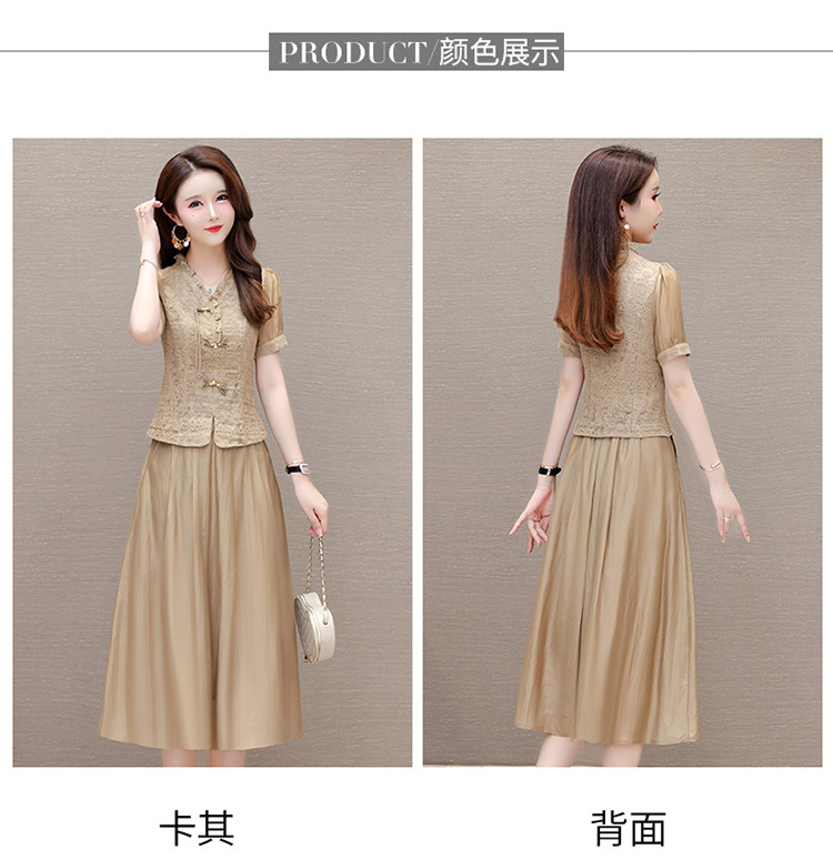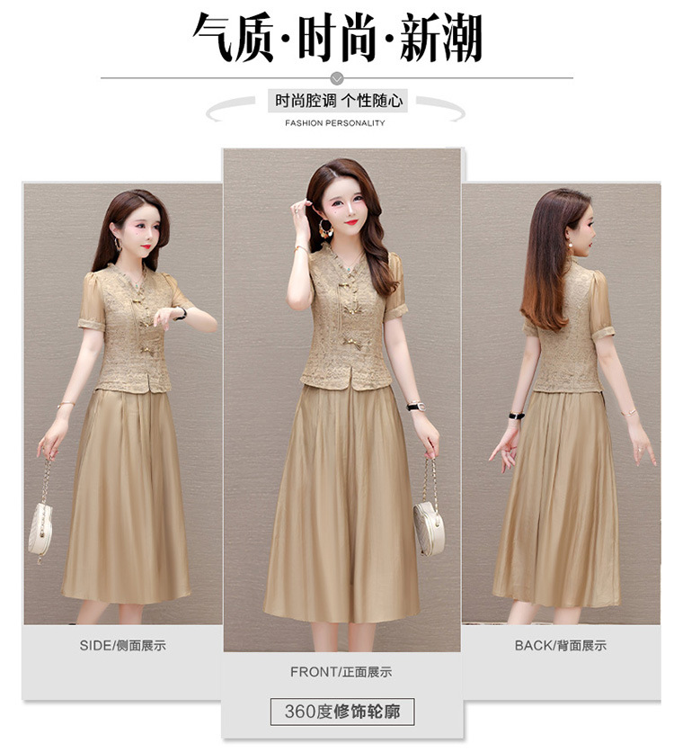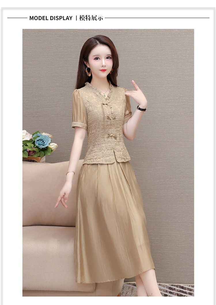 QYM 1712453-Y中式连衣裙两件套短袖复古网纱缕空花小衫+高腰半身裙套裙 商品图3