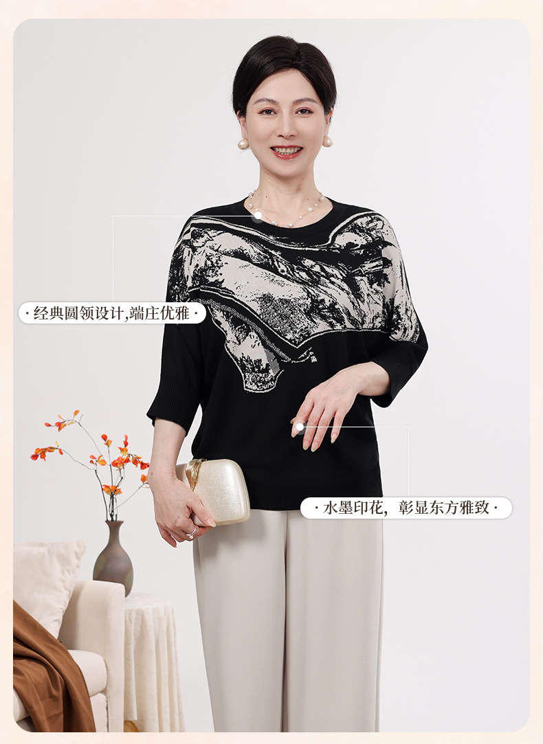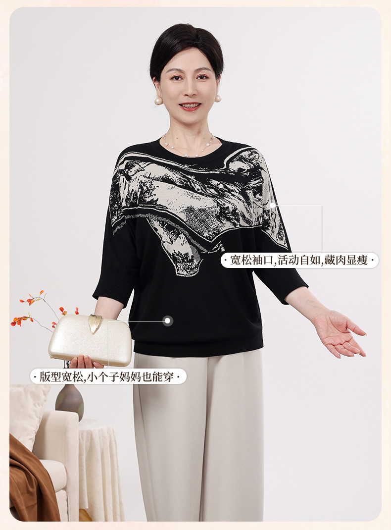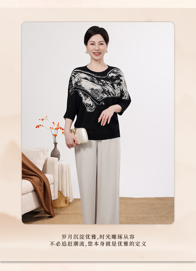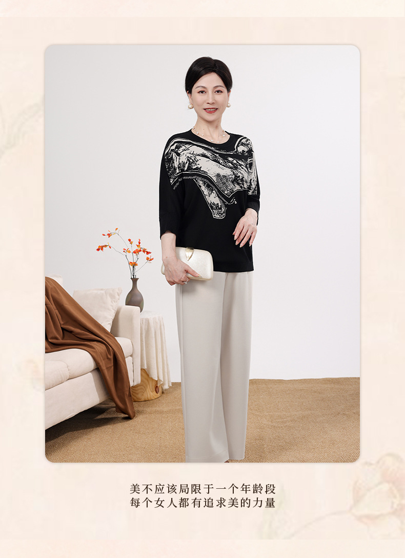 MLL161WP2025秋款妈妈装中老年小衫套装洋气休闲百搭时尚上衣两件套洋气