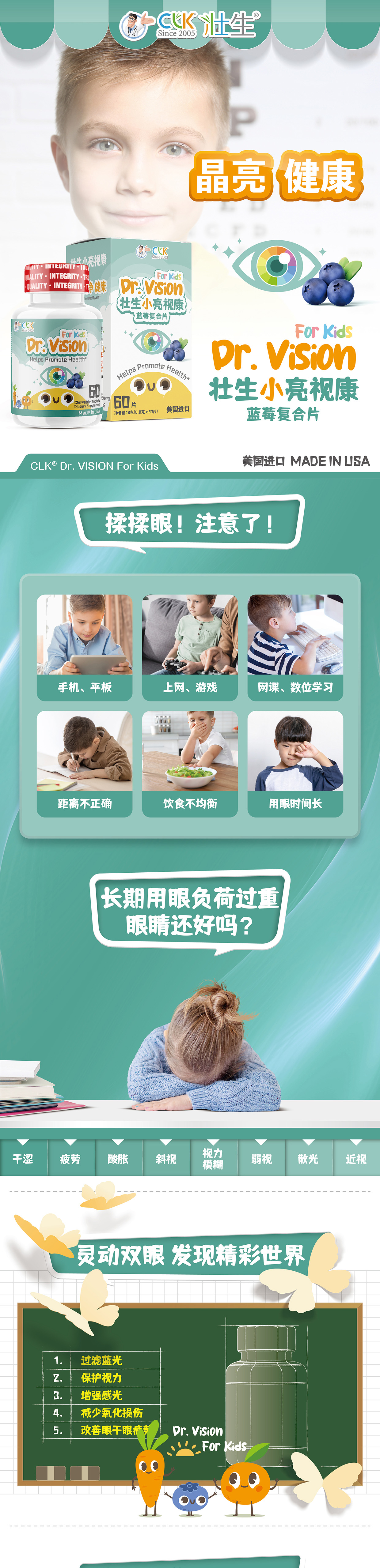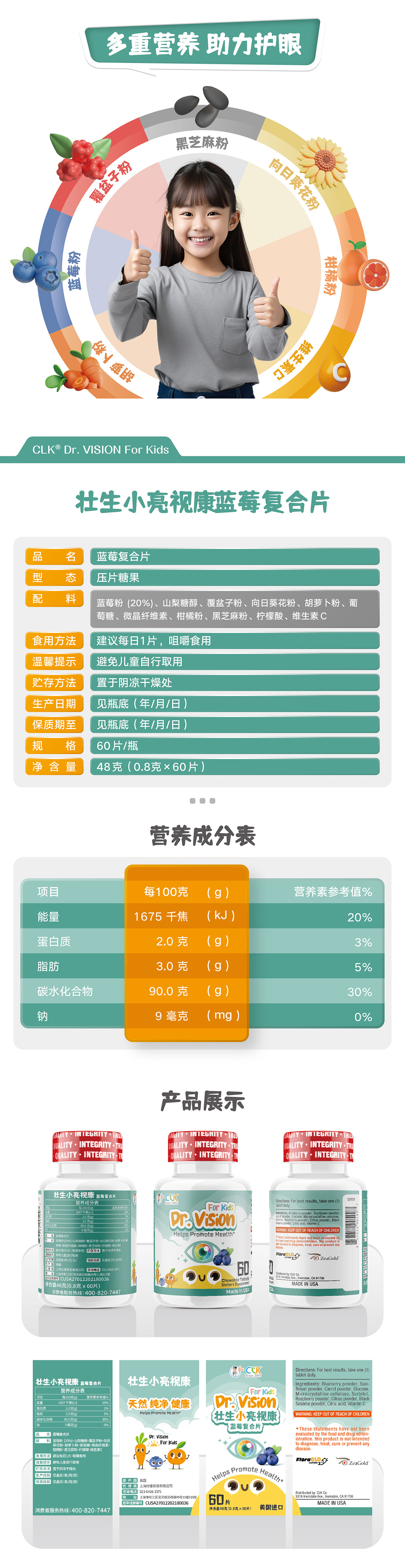 美国壮生® 儿童亮视康(蓝莓咀嚼片)