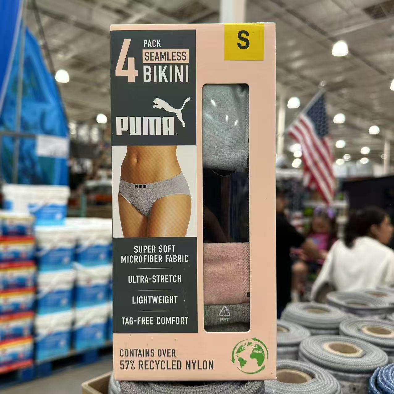 到手价149元 PUMA彪马新款女士运动舒适无痕中腰三角内裤4条装 美国代购,无中文标签,介意慎拍