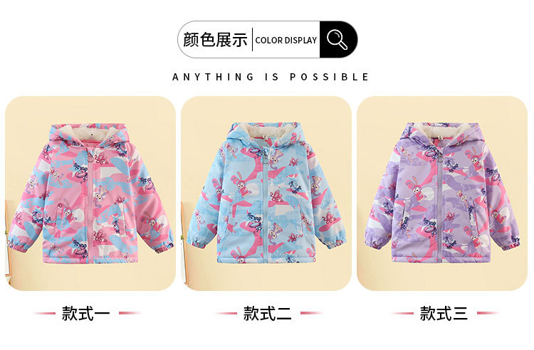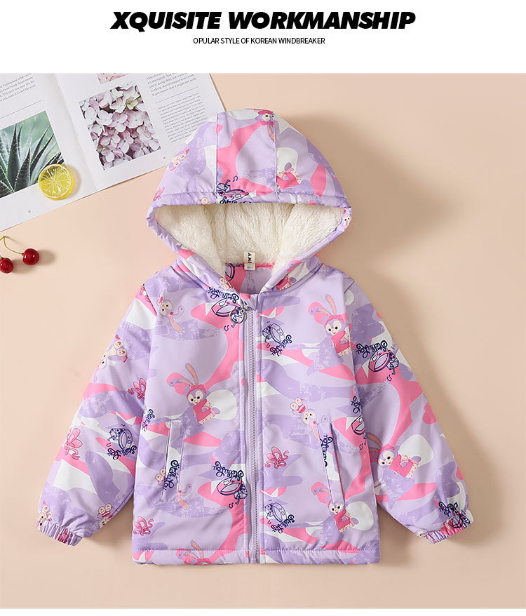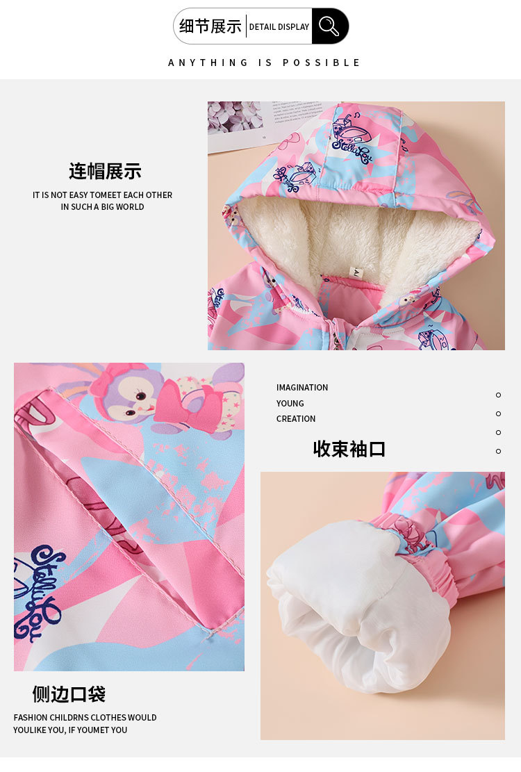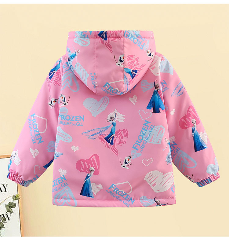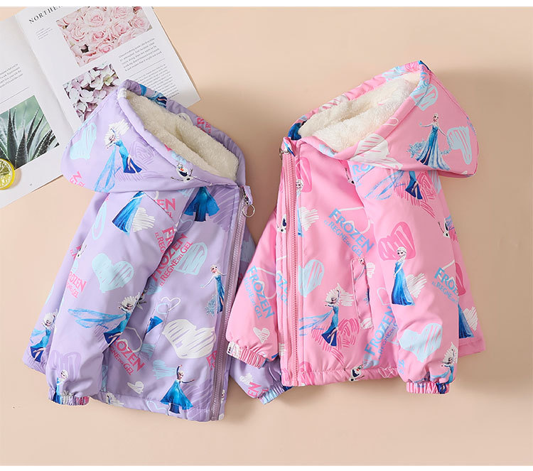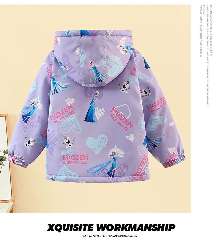【欧美女童风衣新款,百搭冲锋衣外套】秋冬爱莎夹克加绒装连帽,儿童艾莎短款冲锋衣外套,内部加绒装饰提供额外的保护层,有效阻挡寒冷空气的侵入-QQ