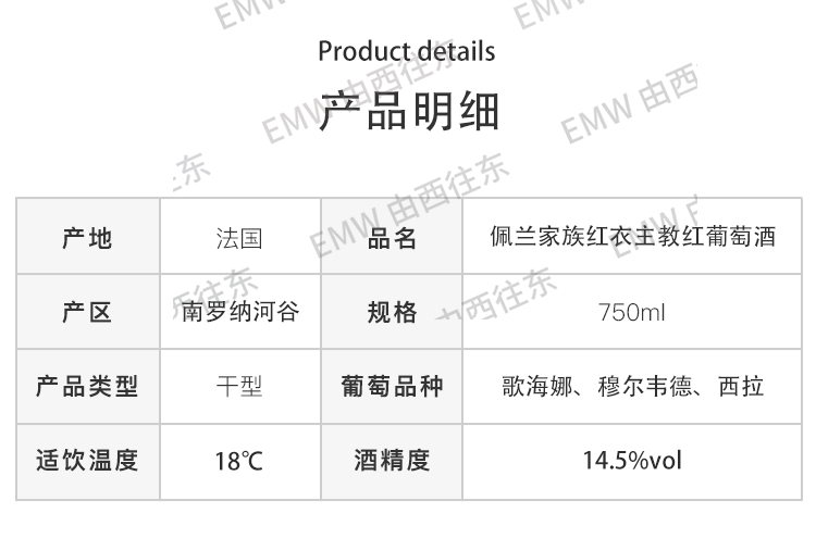 佩兰家族红衣主教红葡萄酒 2018 法国
