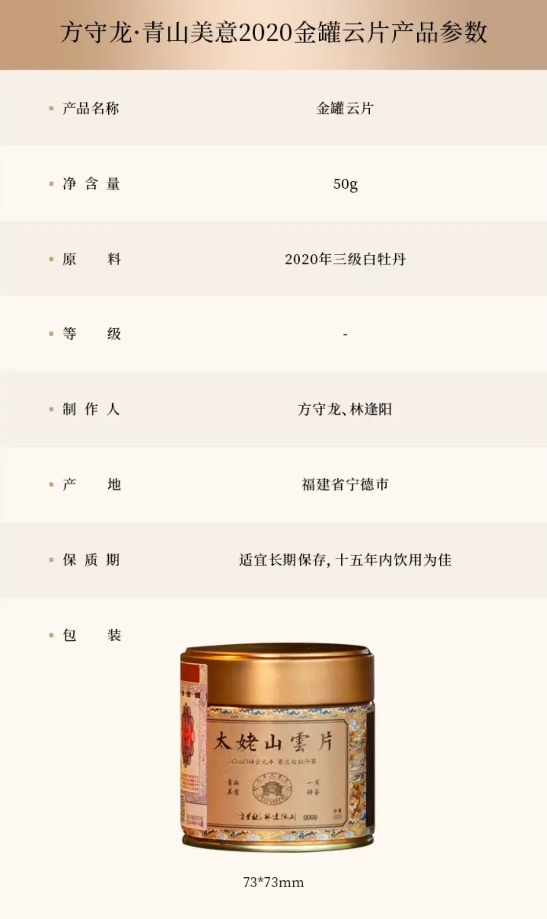 方守龙白茶2020年太姥山云片金罐50克礼盒装[官方旗舰店正品直供]