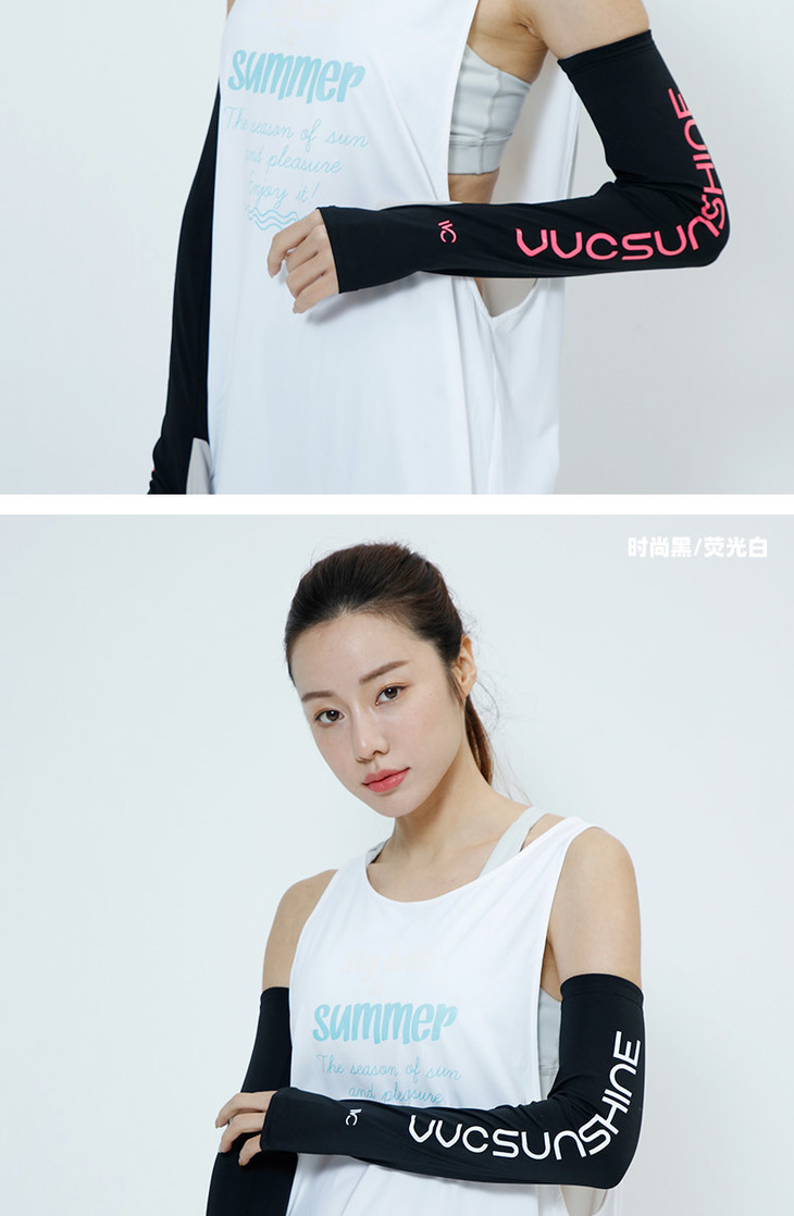 现货 正版授权VVC运动款防晒防紫外线冰丝冰袖女护臂手臂套袖夏季开车长款手套(3)