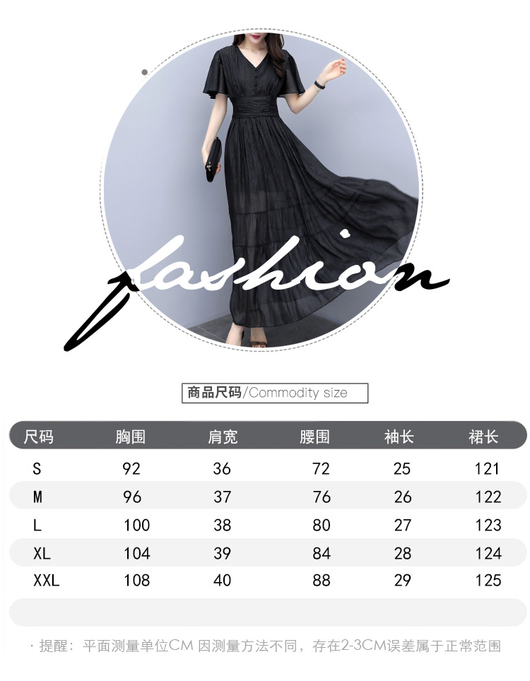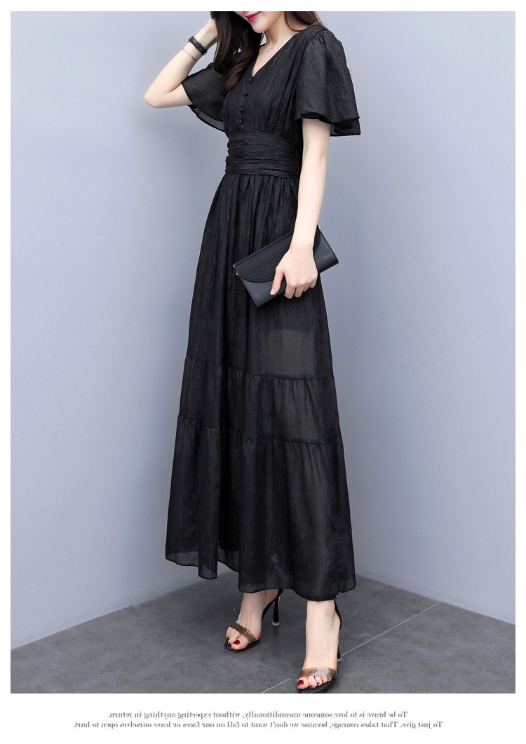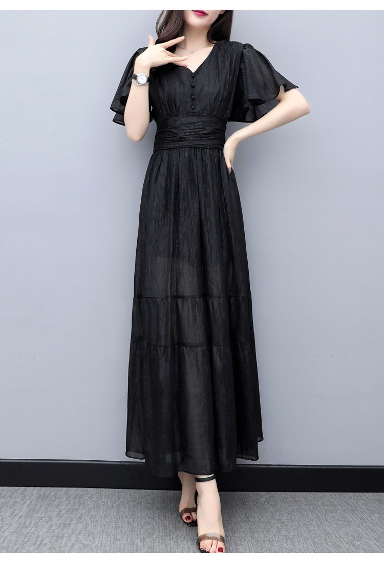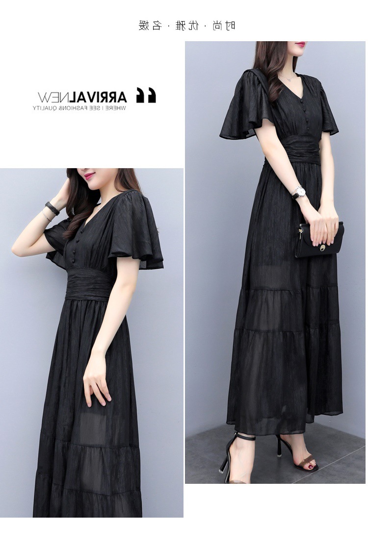 【年终亏本清仓】LDS-3159817夏季新款女装中长款v领收腰显瘦雪纺过膝长裙