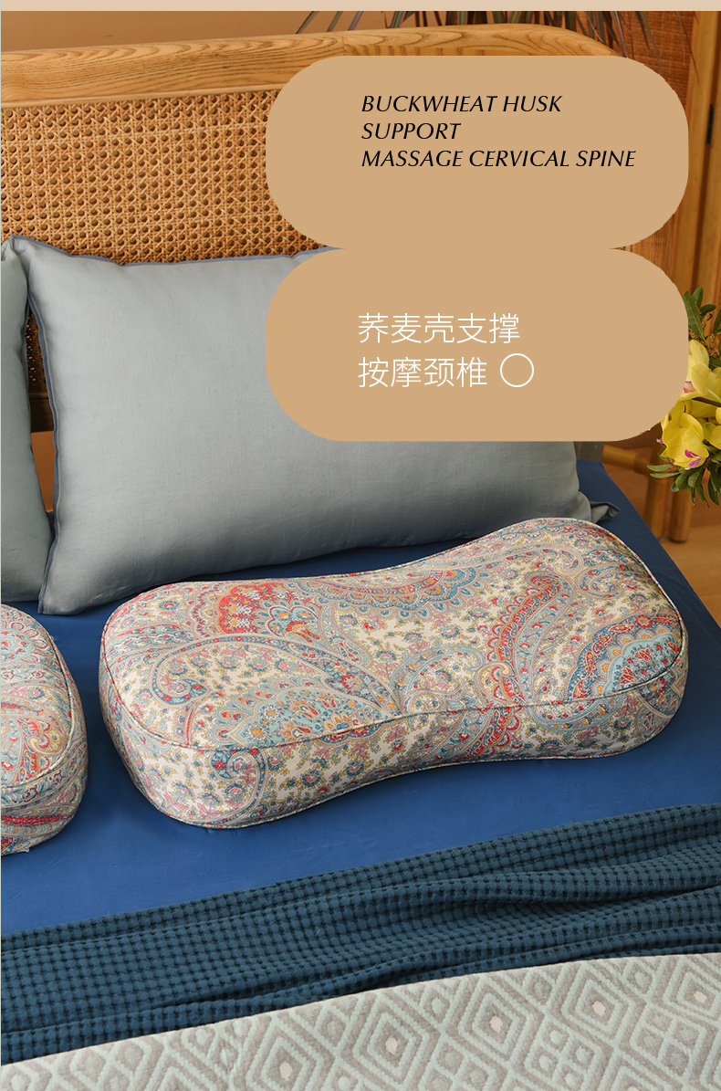 晨暮海系列曲线枕荞麦壳枕头护颈椎荞麦皮睡眠四季