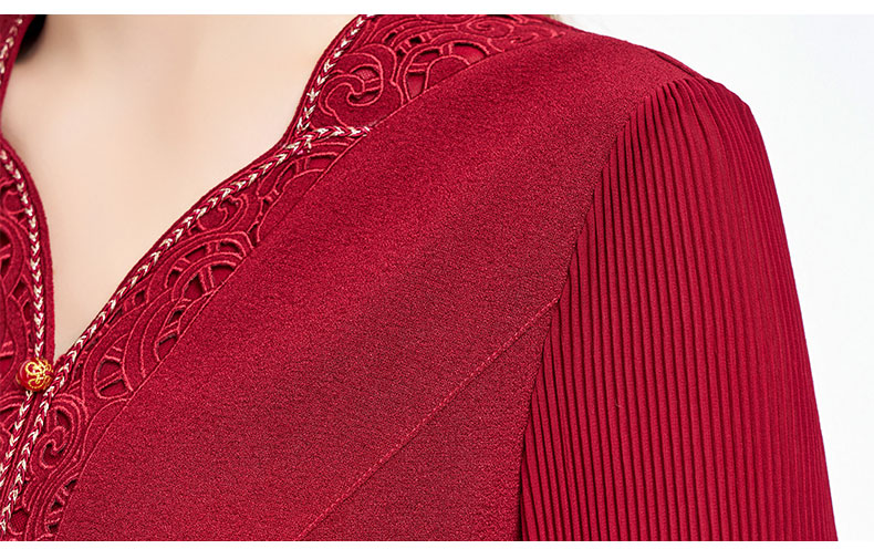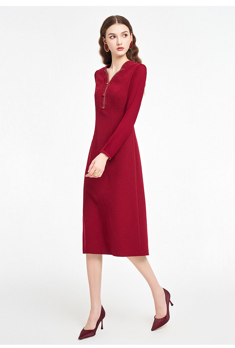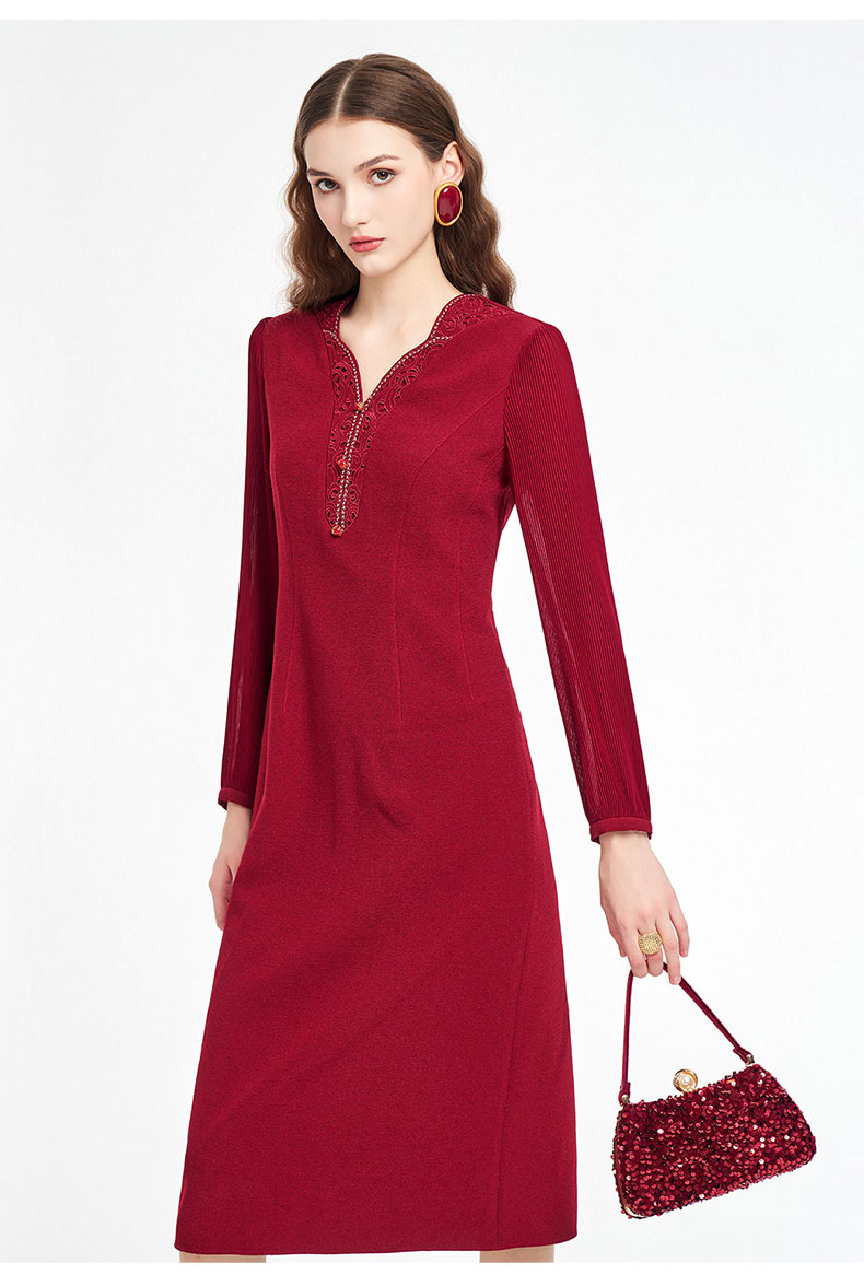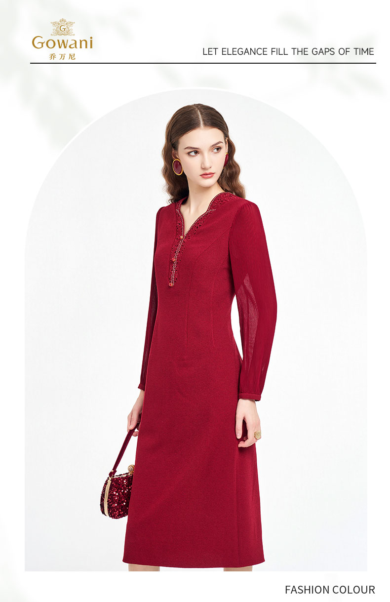 乔万尼2025秋新品高级宴会红装收腰V领连衣裙ED3E311