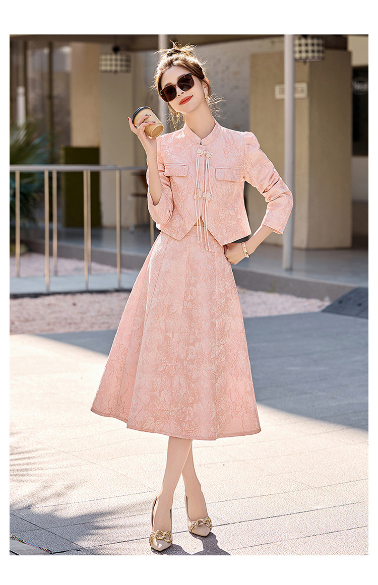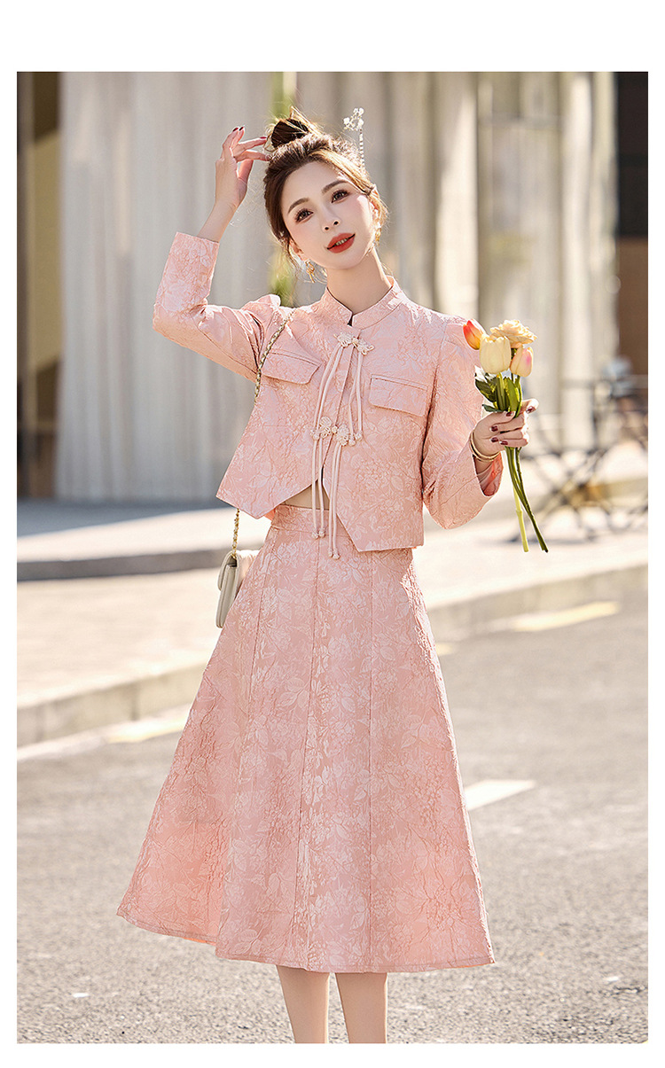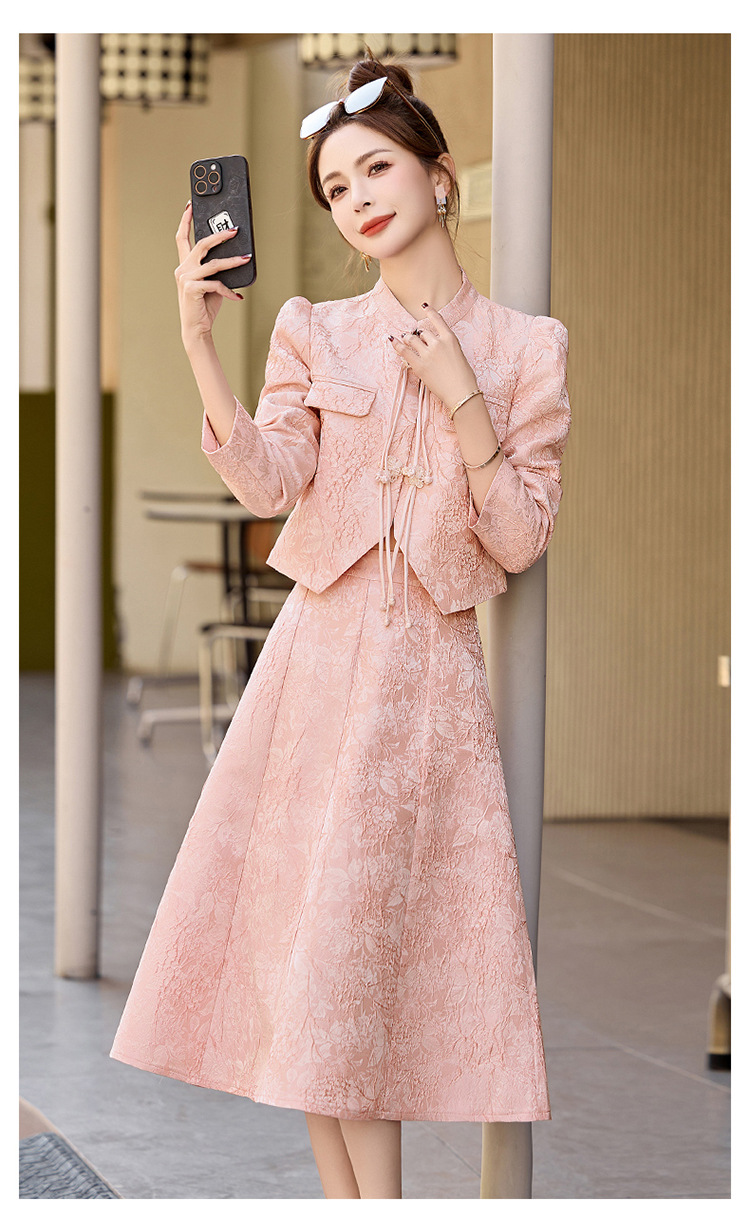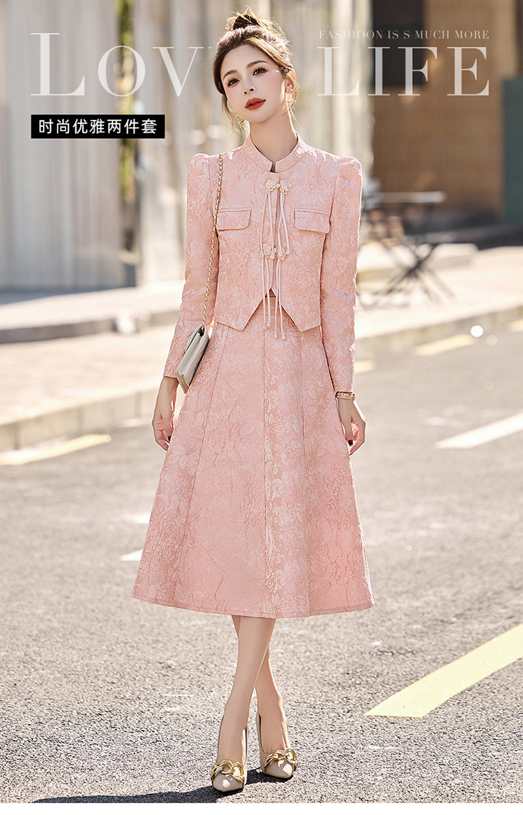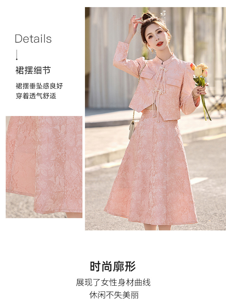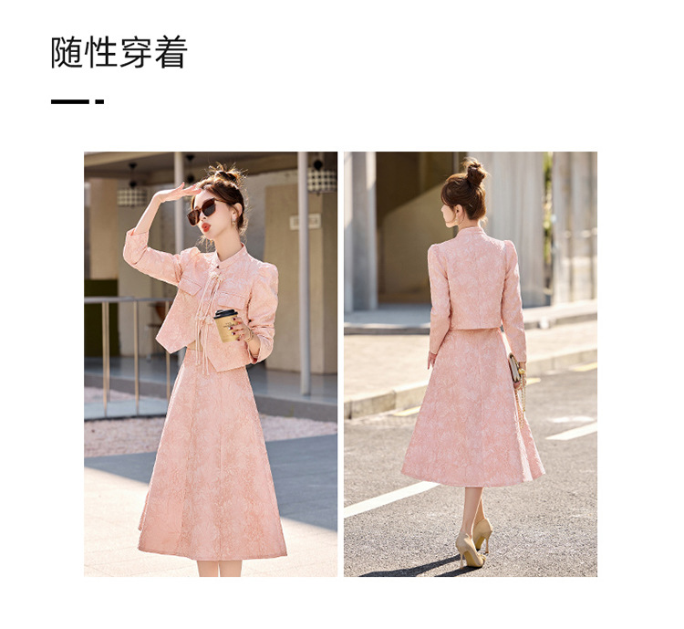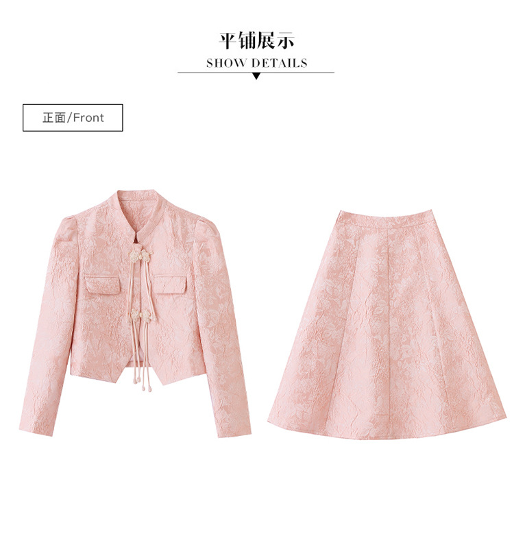 新中式G风提花盘扣时尚气质半身裙两件套套装YQH2612