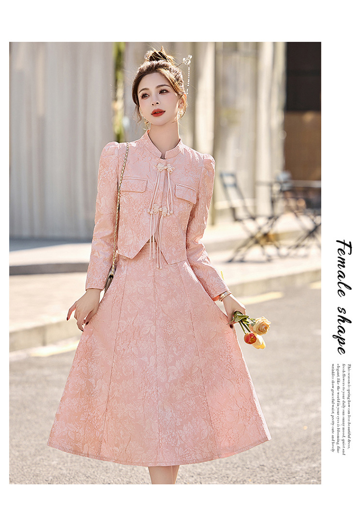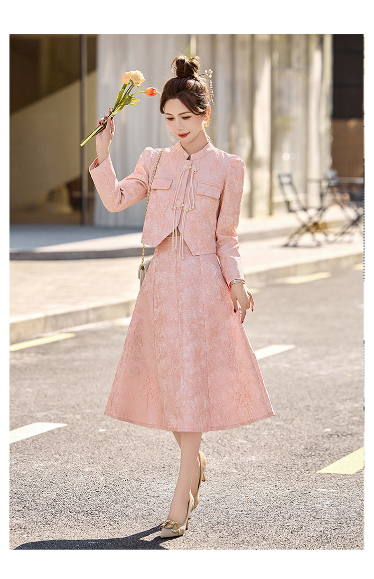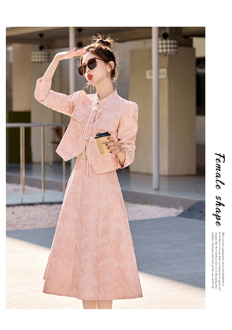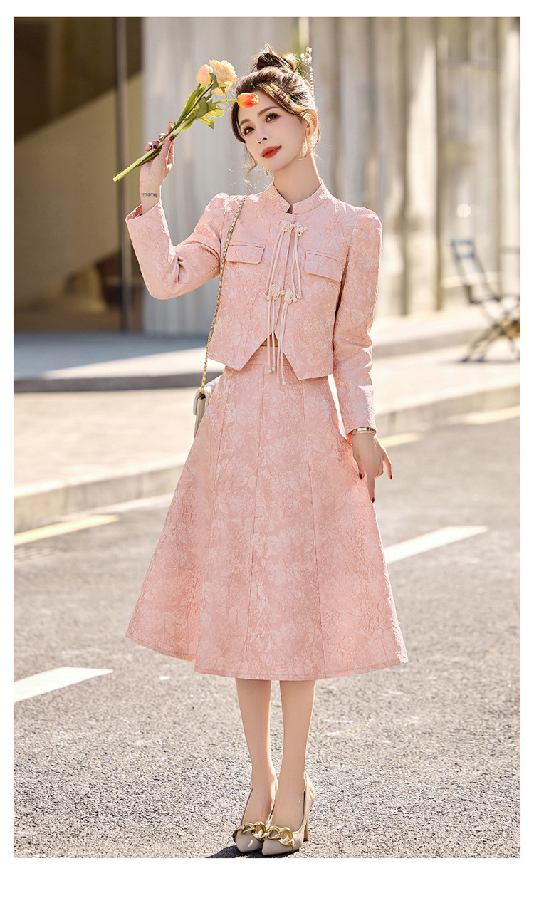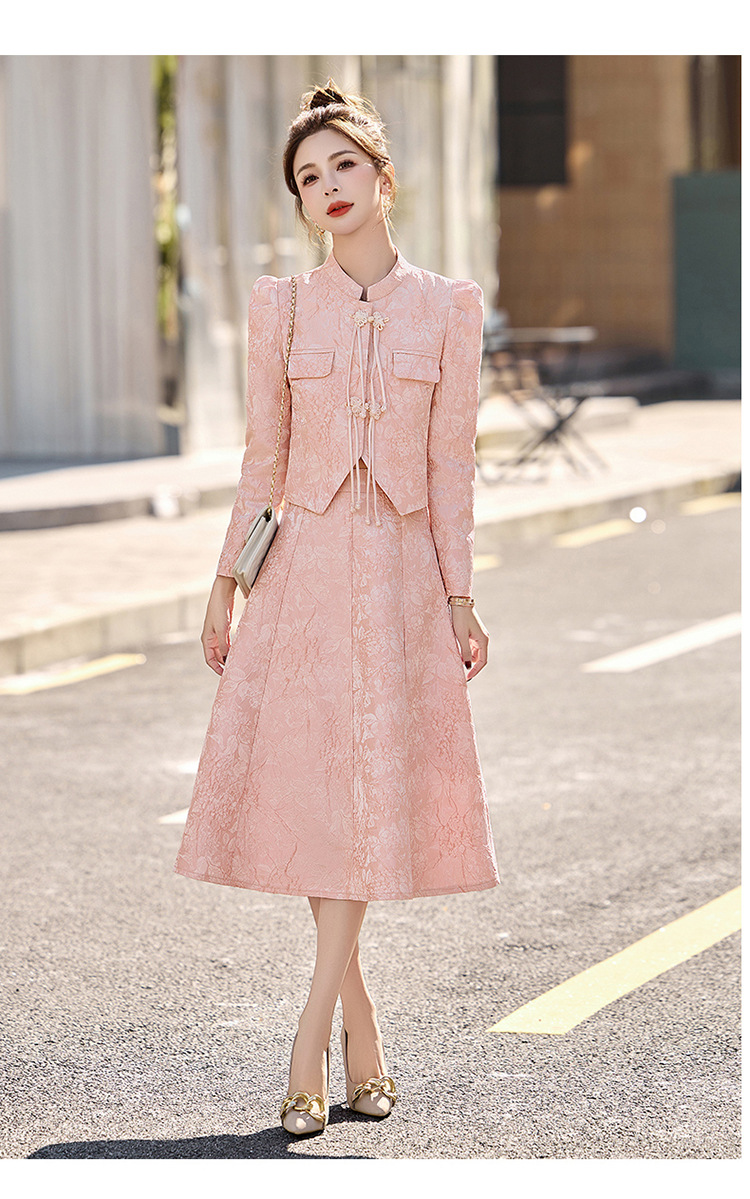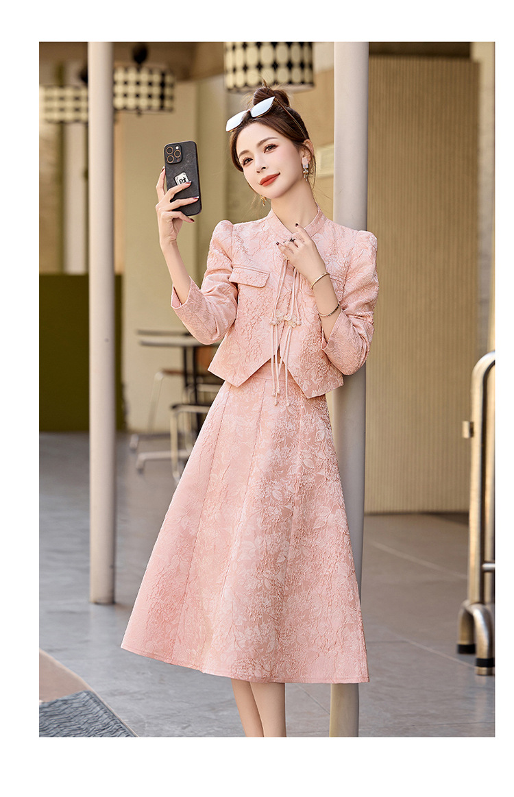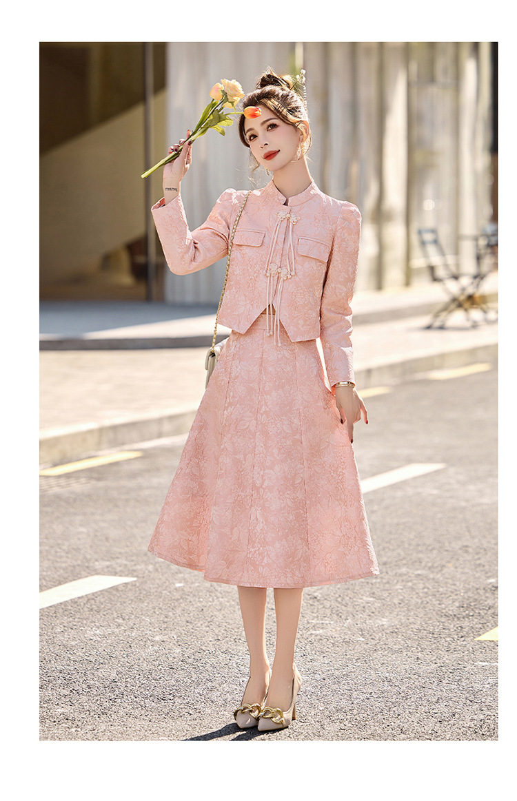 新中式G风提花盘扣时尚气质半身裙两件套套装YQH2612