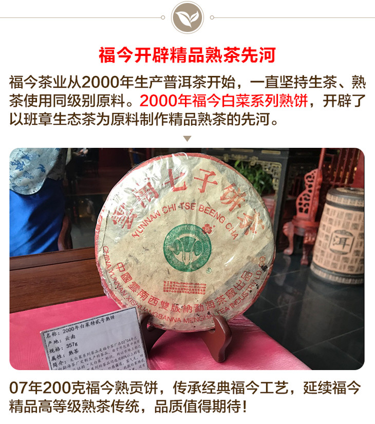 福今普洱茶熟茶 2007年福今熟贡饼200克小饼 宫廷芽头原料 福今熟普精品