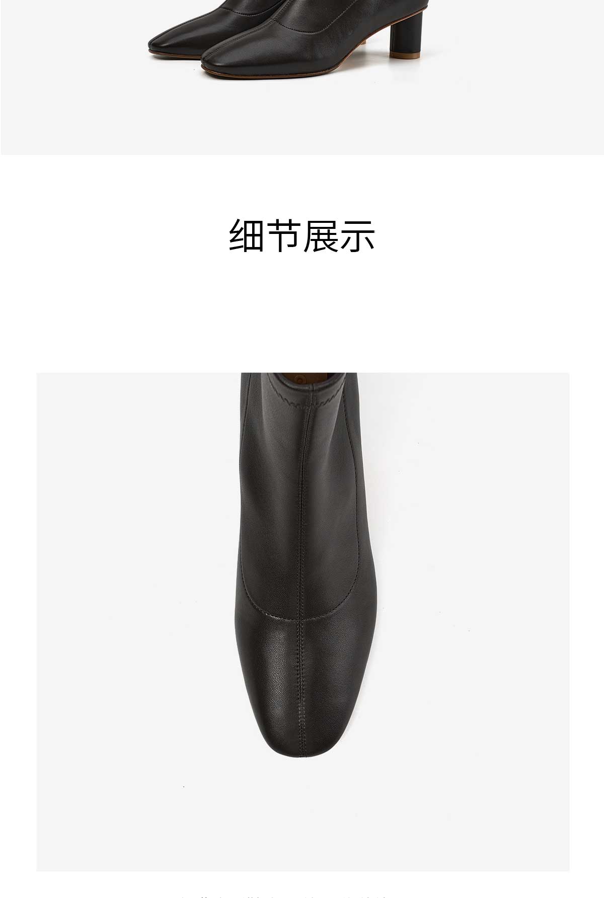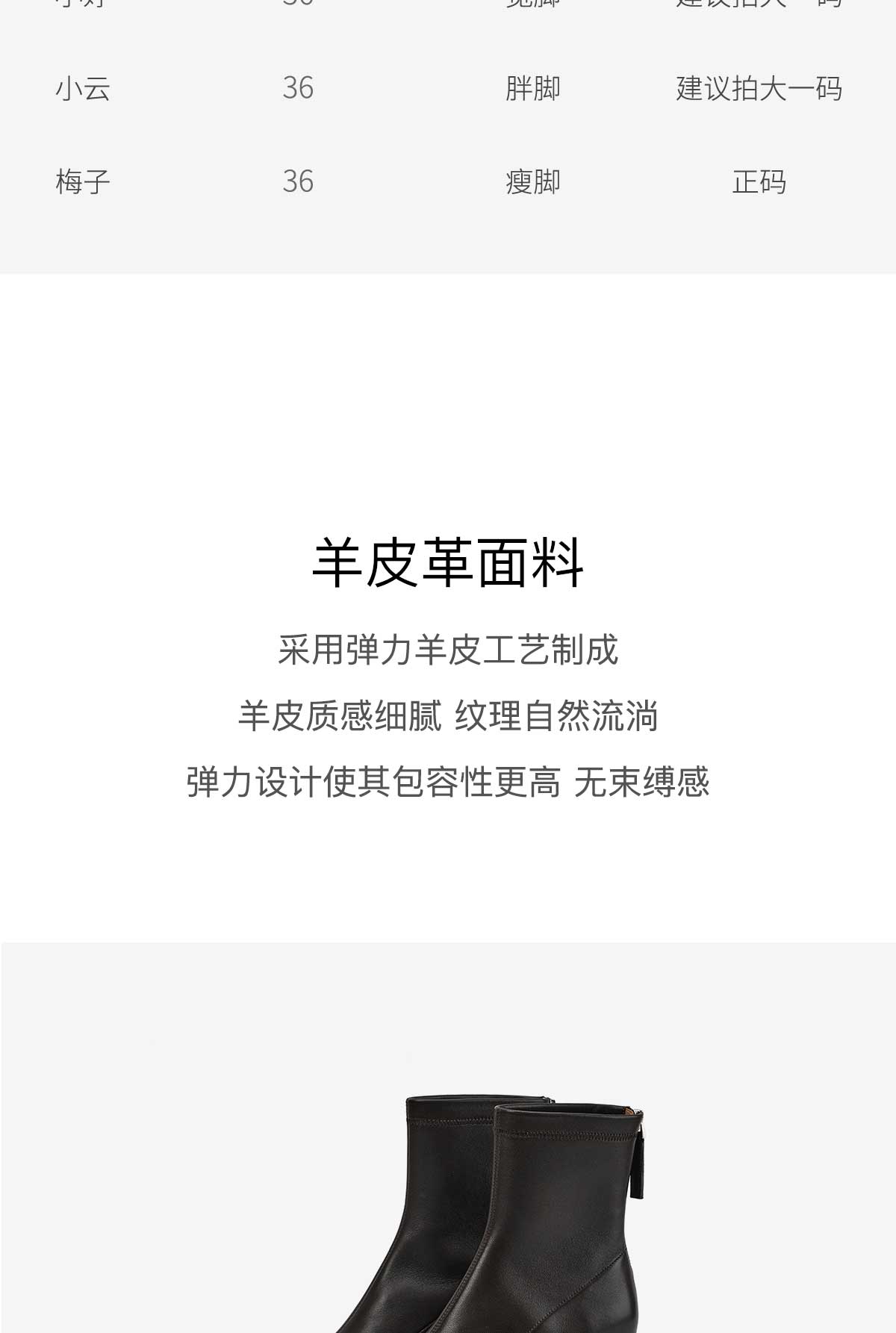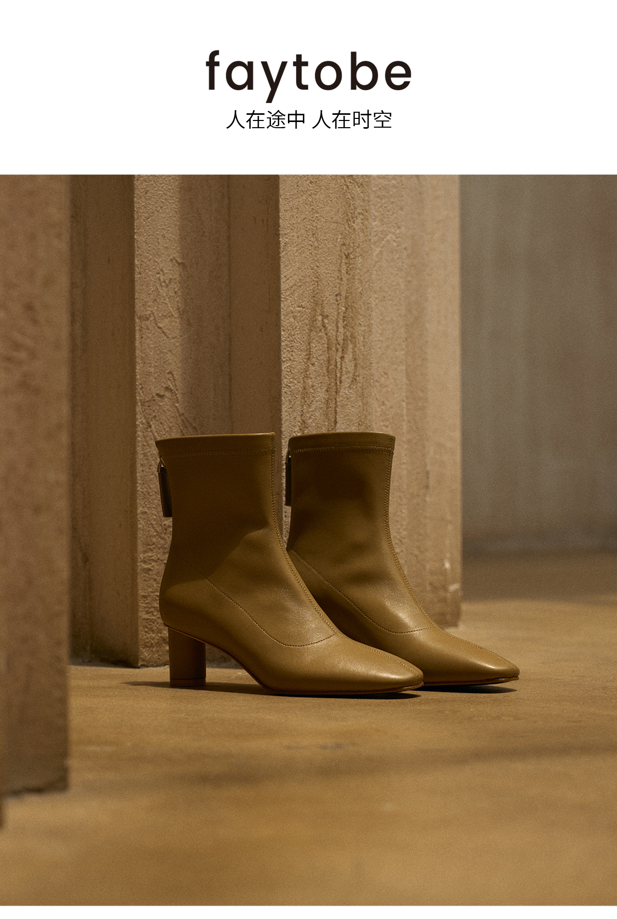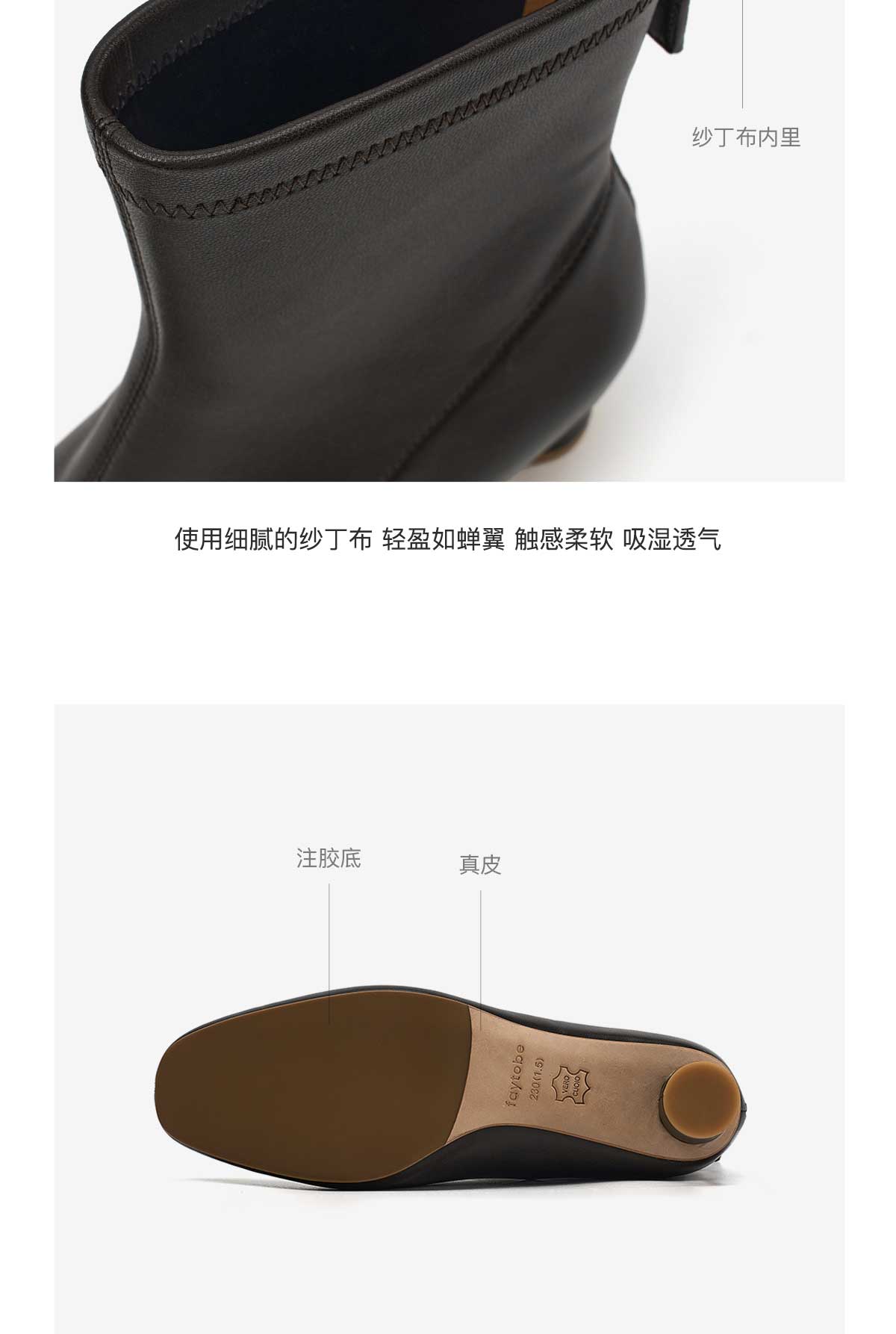 faytobe 弹力羊皮瘦瘦靴秋冬新款休闲百搭中筒高跟短靴女极简靴子