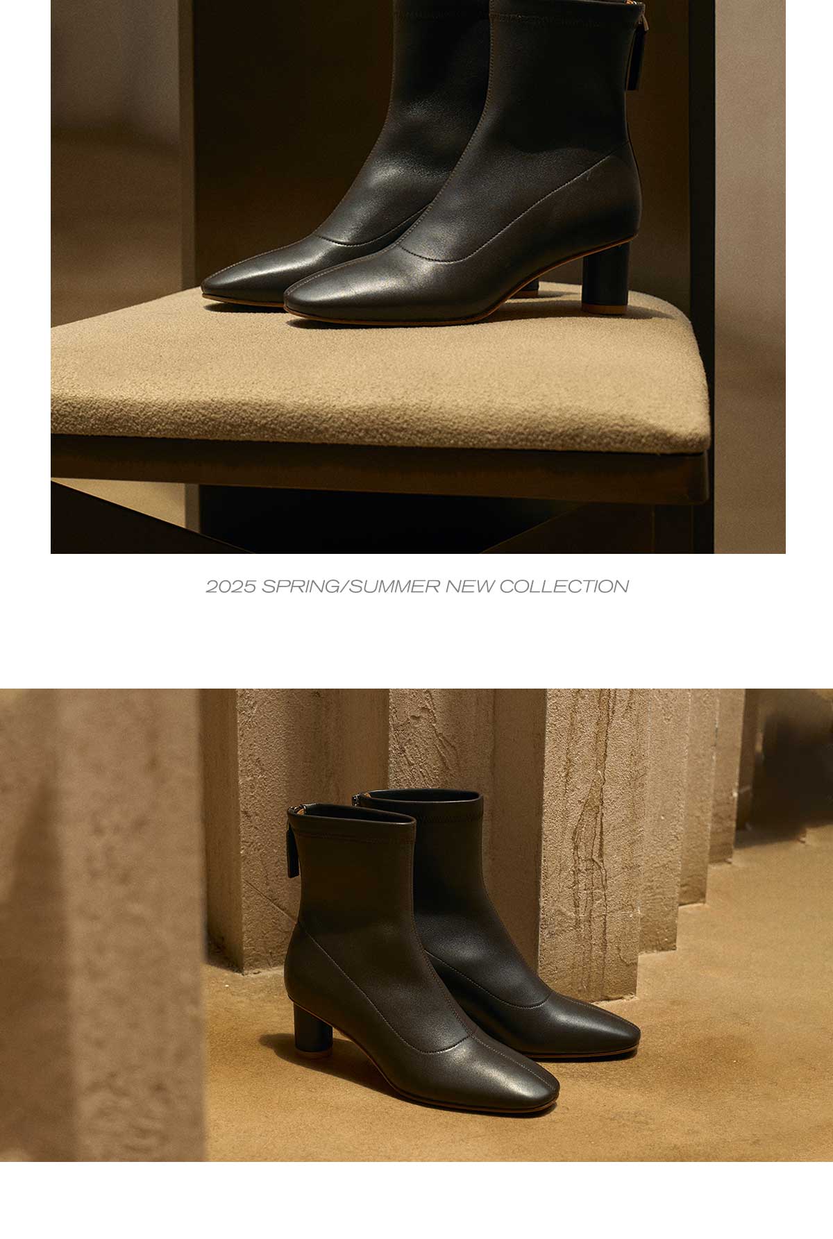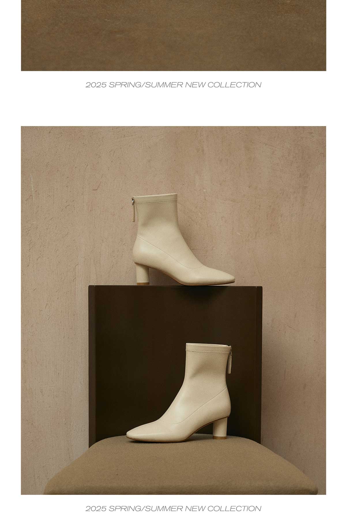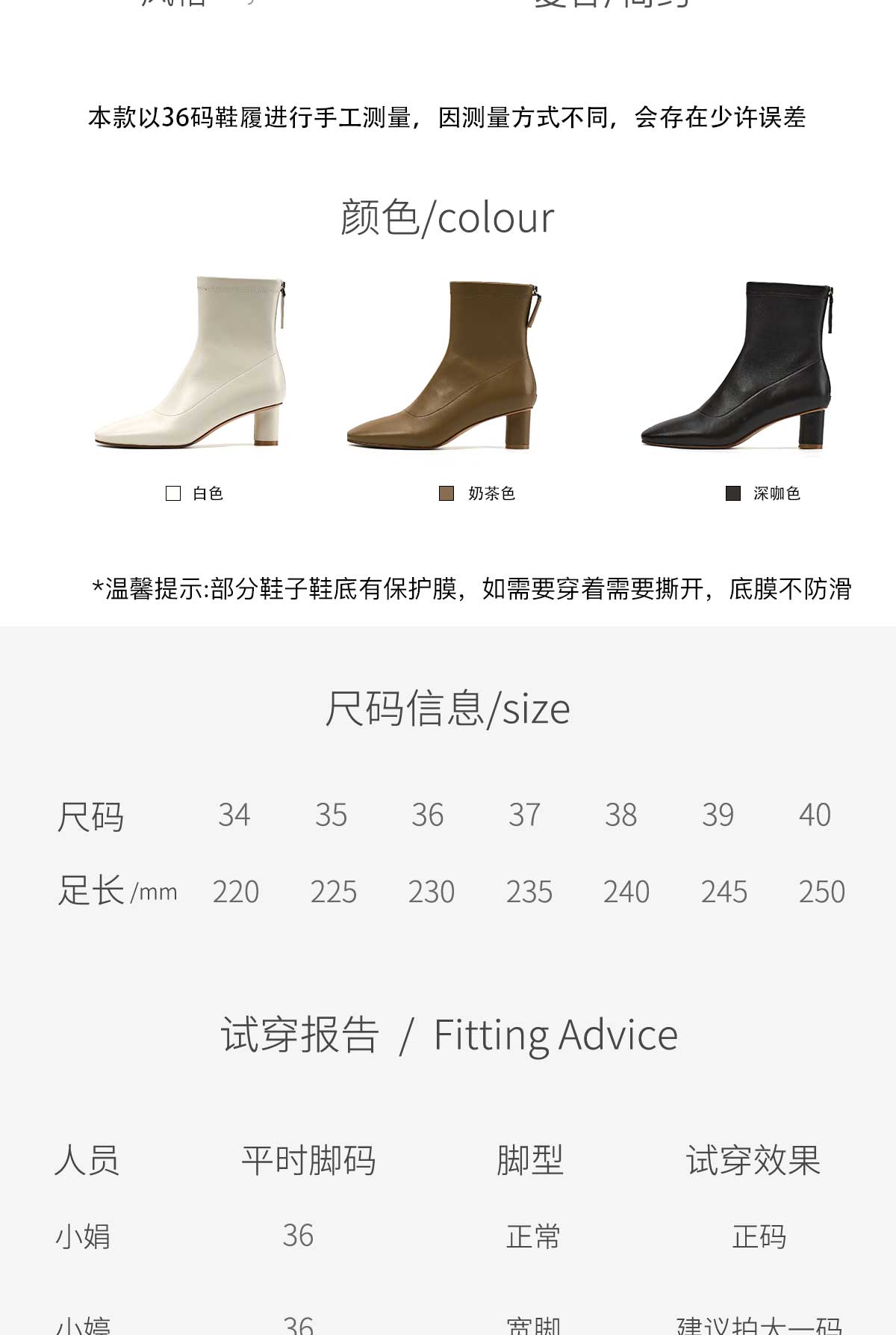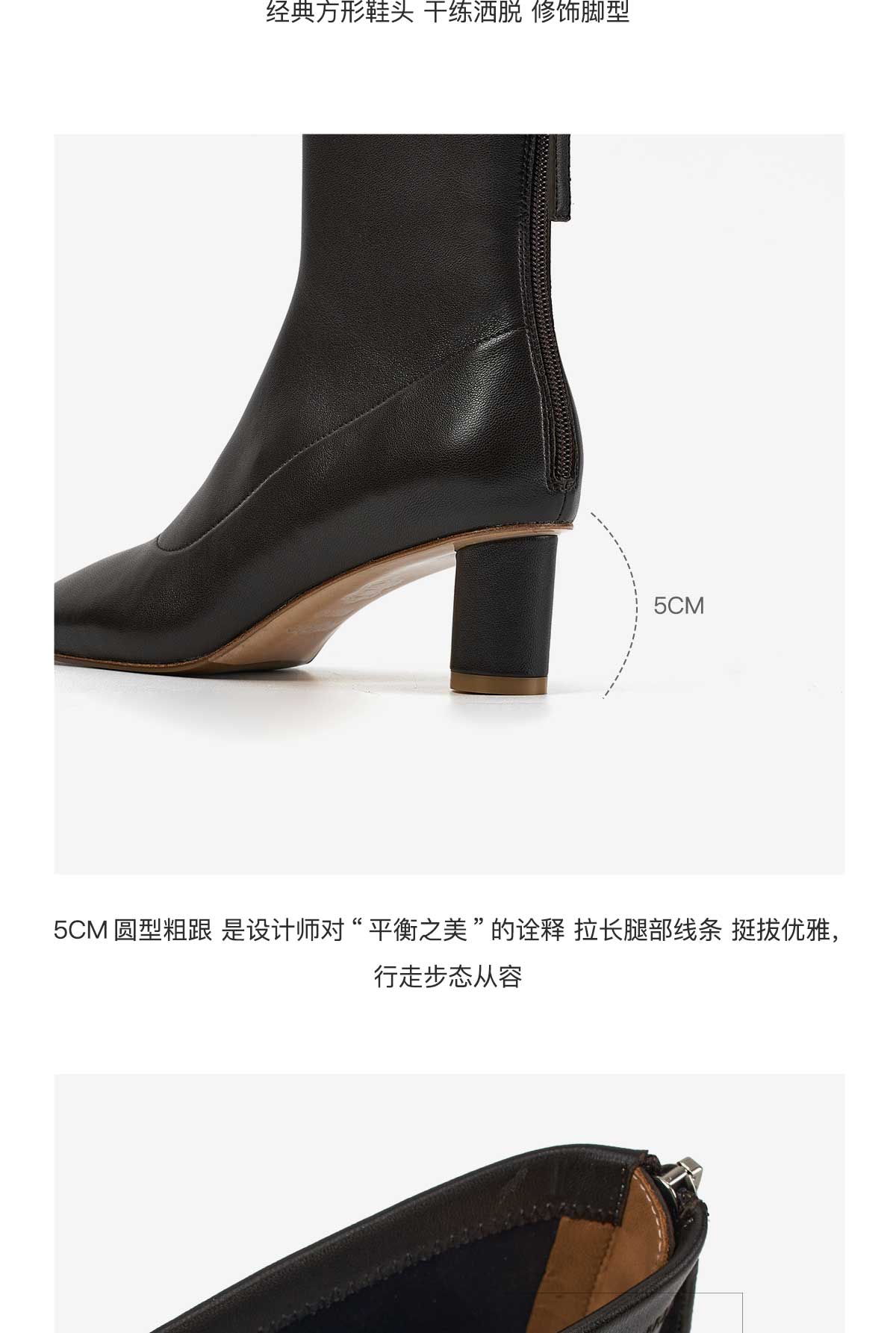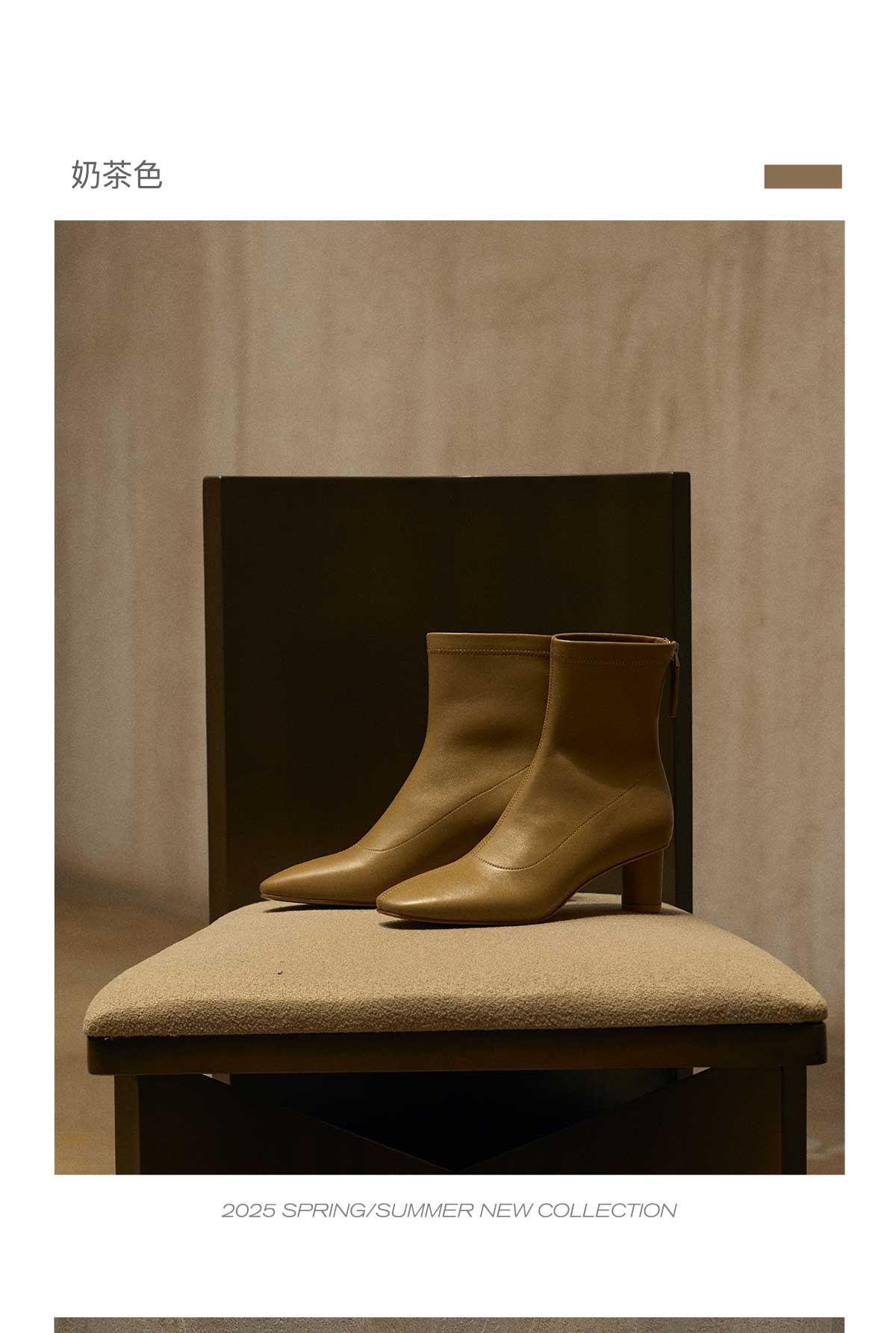 faytobe 弹力羊皮瘦瘦靴秋冬新款休闲百搭中筒高跟短靴女极简靴子