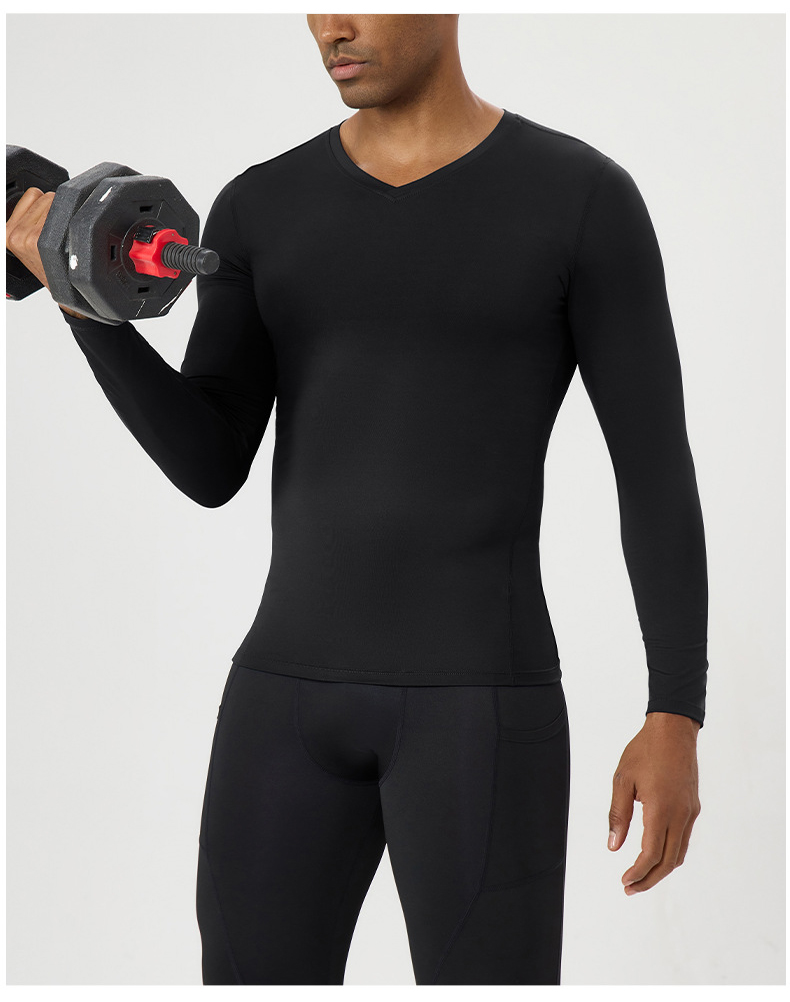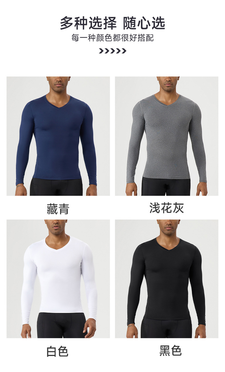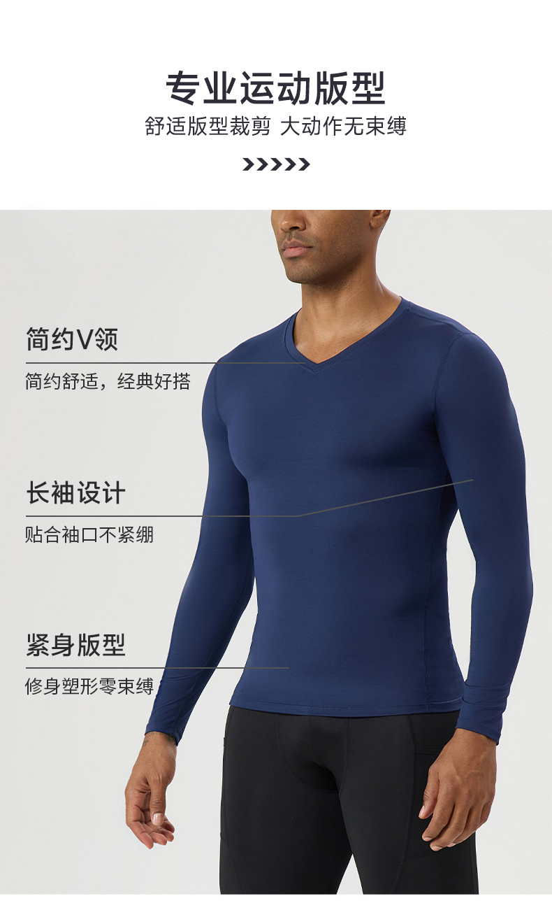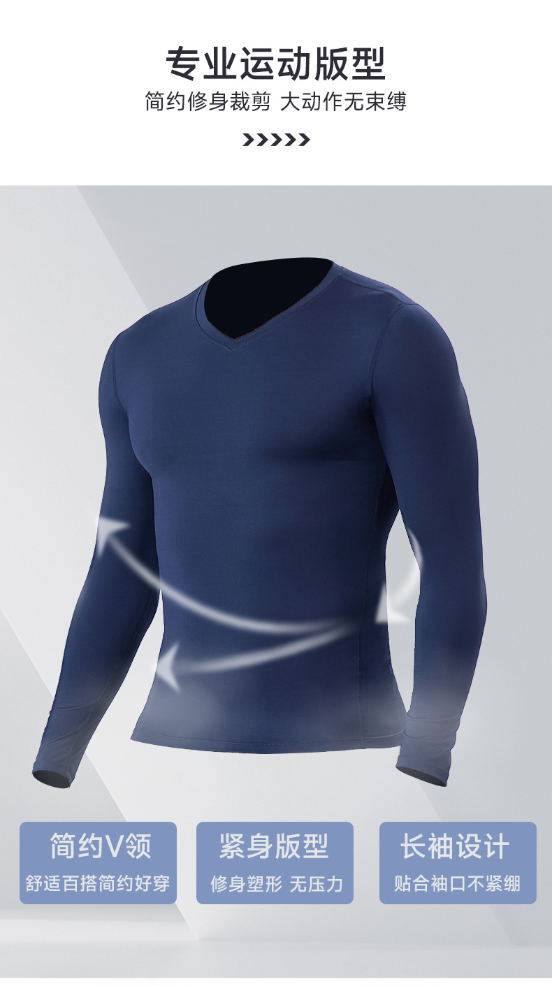 跃牌【欲动春风】男装系列 男V领健身服长袖紧身衣速干排汗t恤高弹透气跑步训练运动打底上衣51525