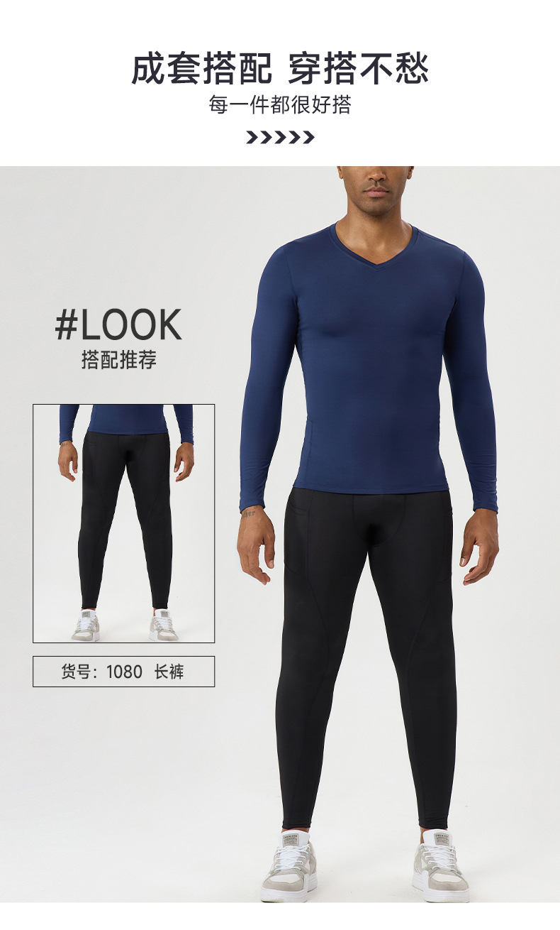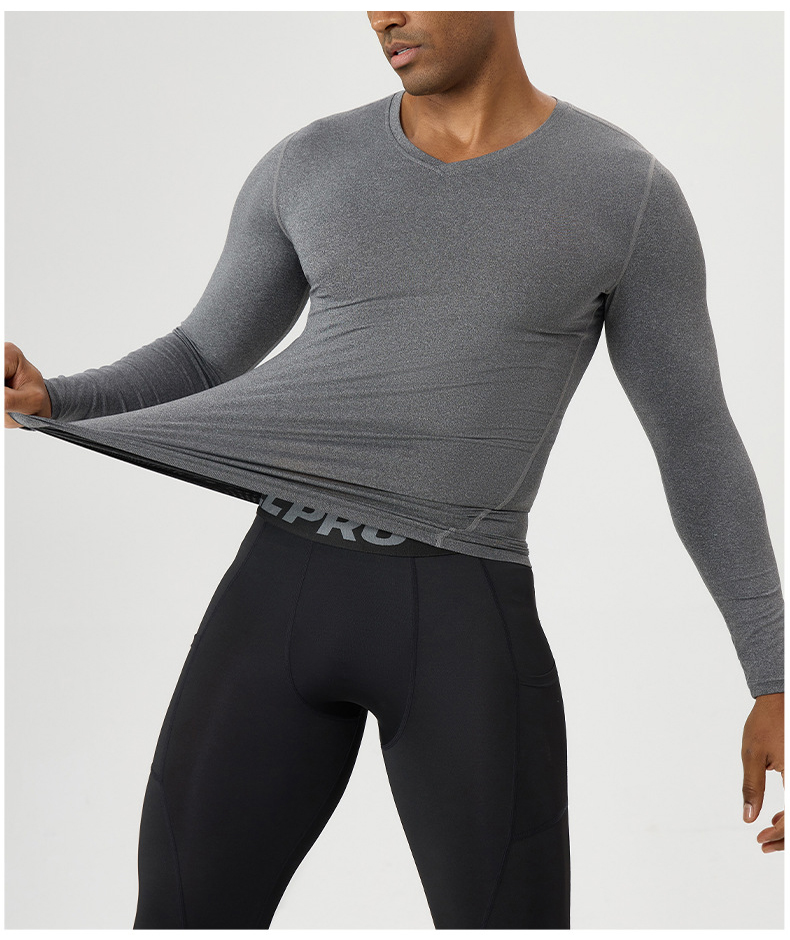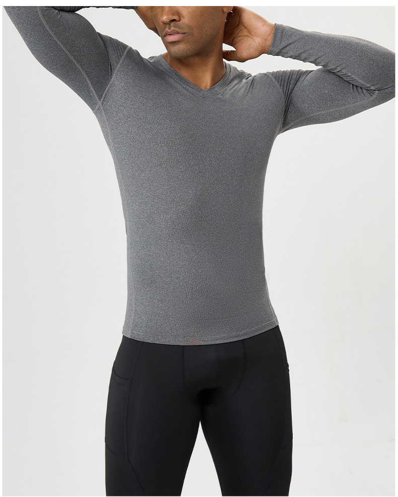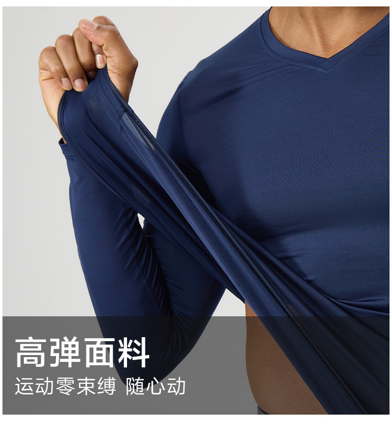 跃牌【欲动春风】男装系列 男V领健身服长袖紧身衣速干排汗t恤高弹透气跑步训练运动打底上衣51525