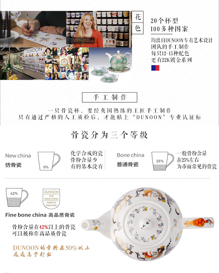 英国原产DUNOON丹侬pussy galore系列骨瓷茶杯水杯茶具