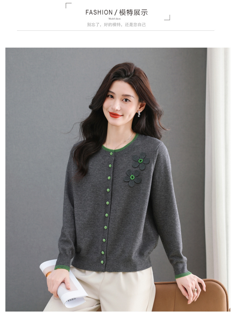 CC 5-6622圆领针织开衫外套宽松软糯毛衣
