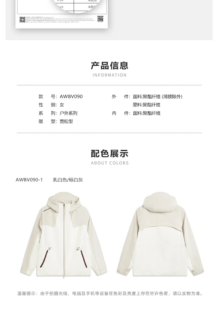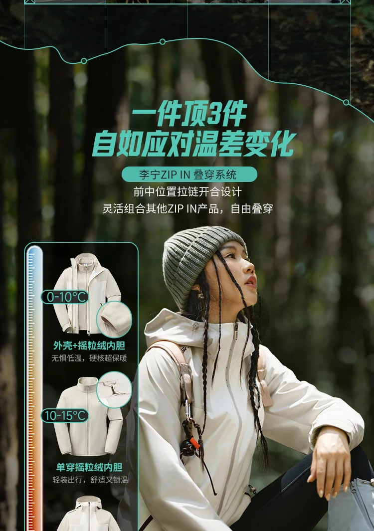 李宁户外CF溯|珑壳外套白龘女子加绒保暖防泼水三合一运动风衣套装AWBV090