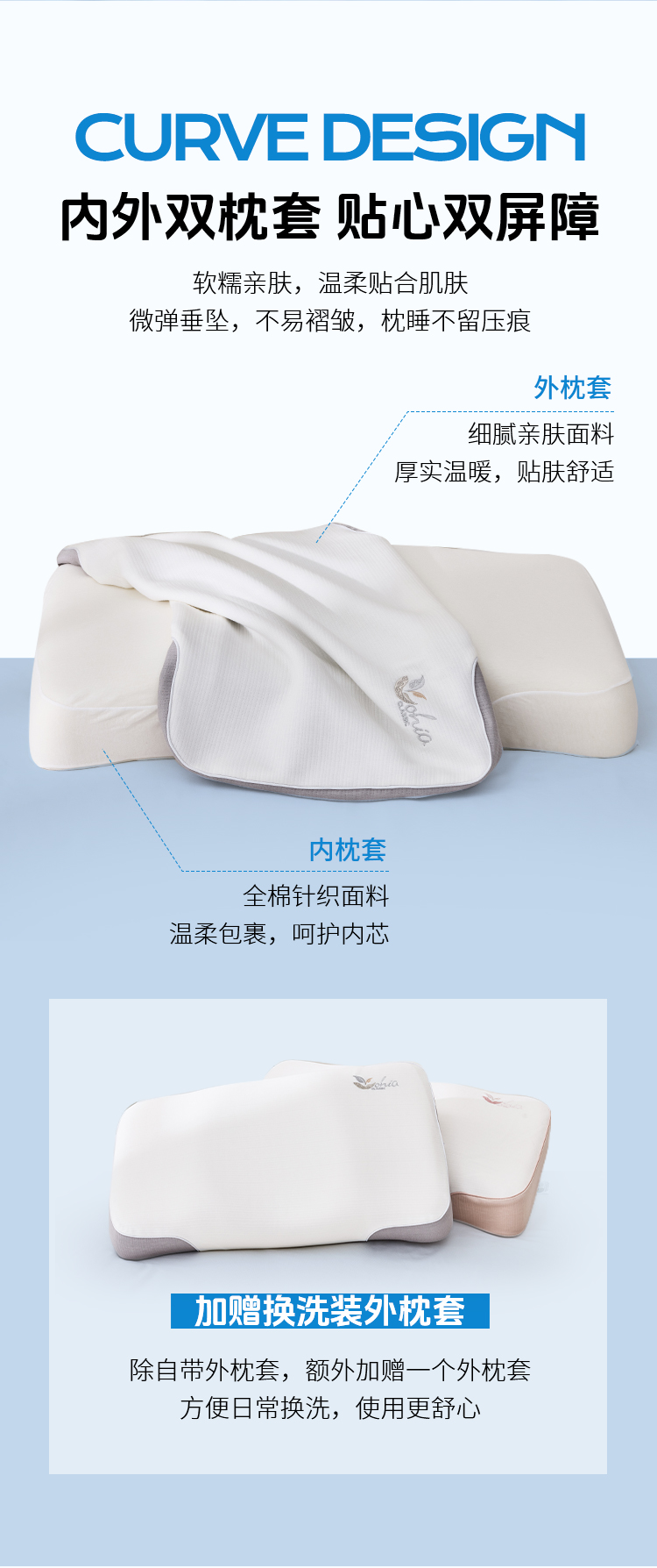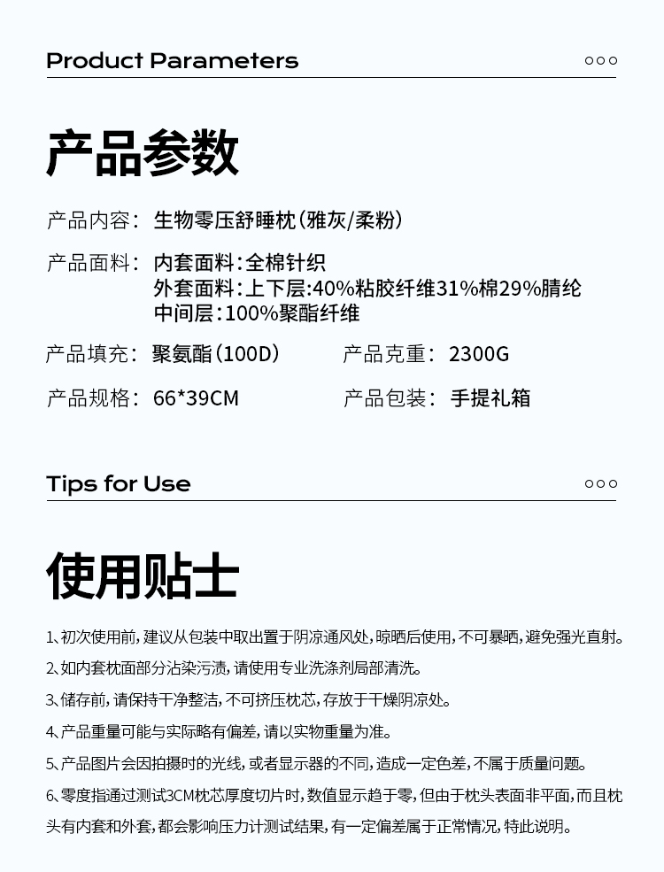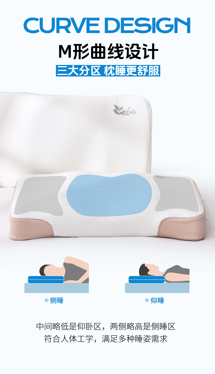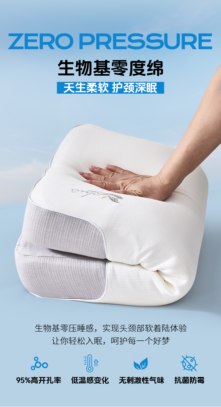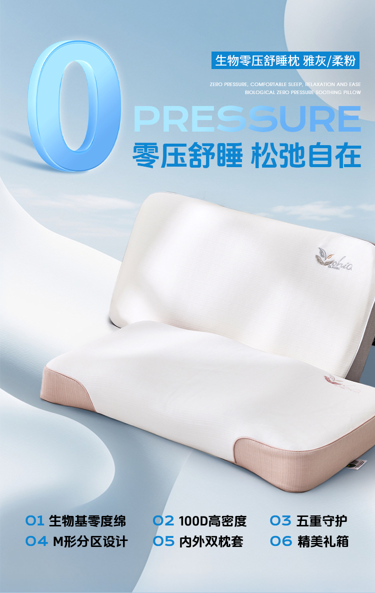 多喜爱 生物零压舒睡枕(雅灰/柔粉)【生物基零度绵】【0压舒睡】【M型曲线设计】【100D高密度】内外双枕套 精美手提箱