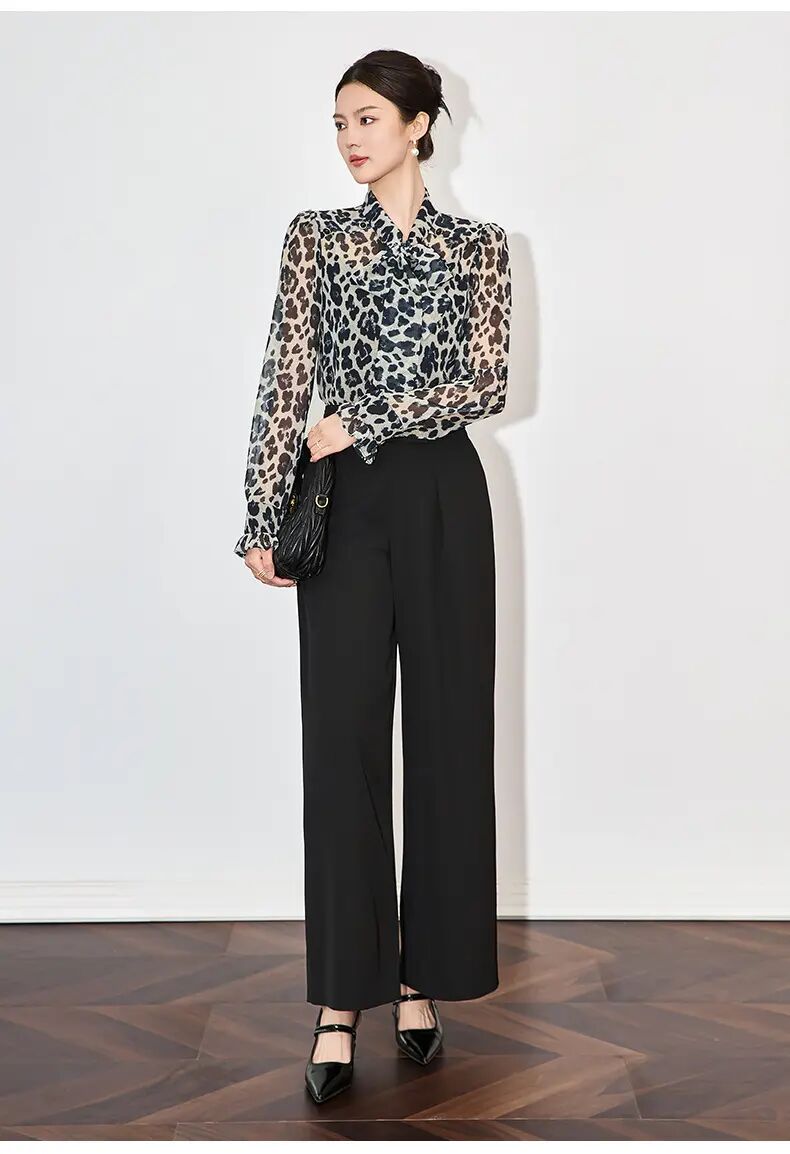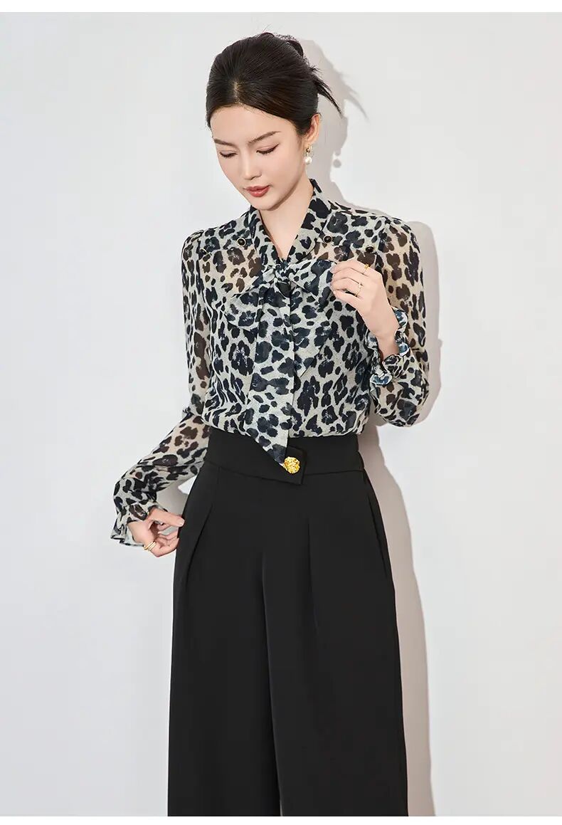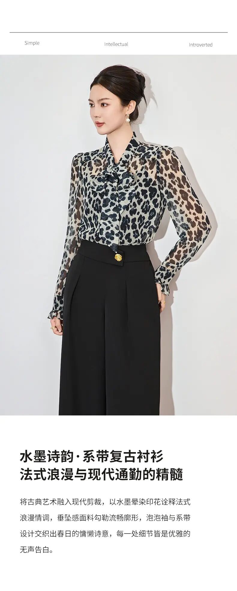 【高货wl】全新升级【铂金会员220/天猫299/差价79】(02957) 洛诗琳法式复古印花雪纺系带领女衬衫时尚感气质长袖女