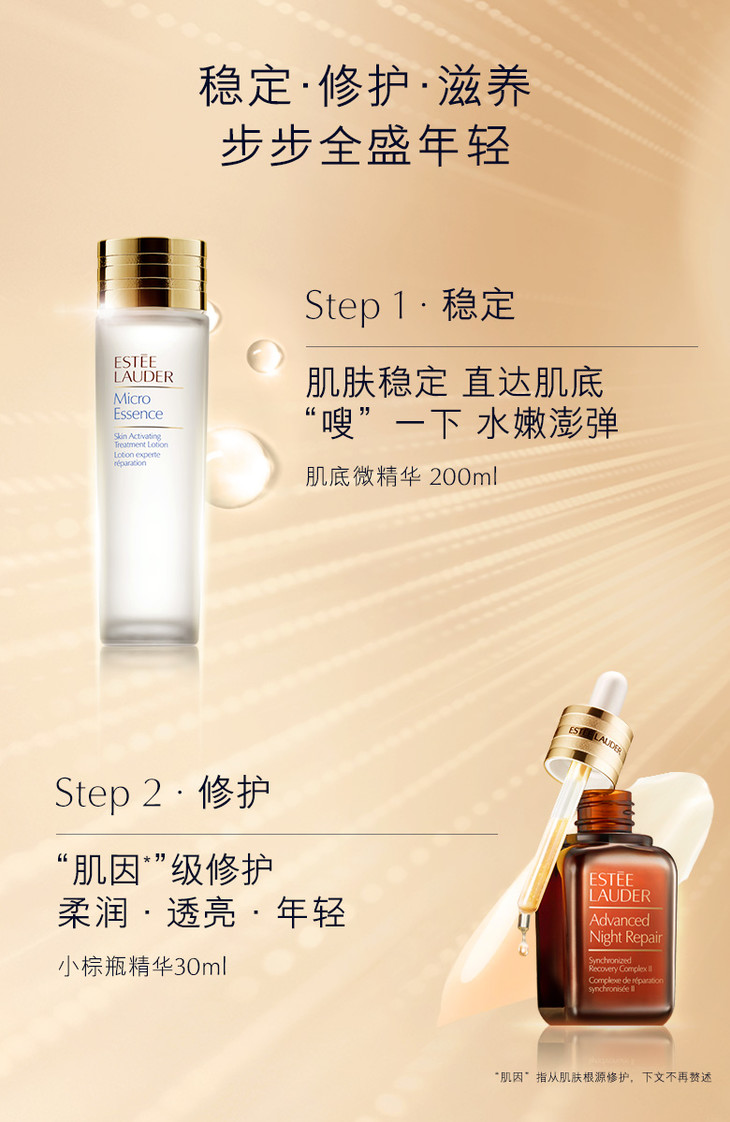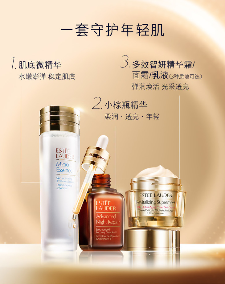 雅诗兰黛护肤套装 套盒 小棕瓶精华30ml+微精华200ml+智妍精华霜75ml 补水修护