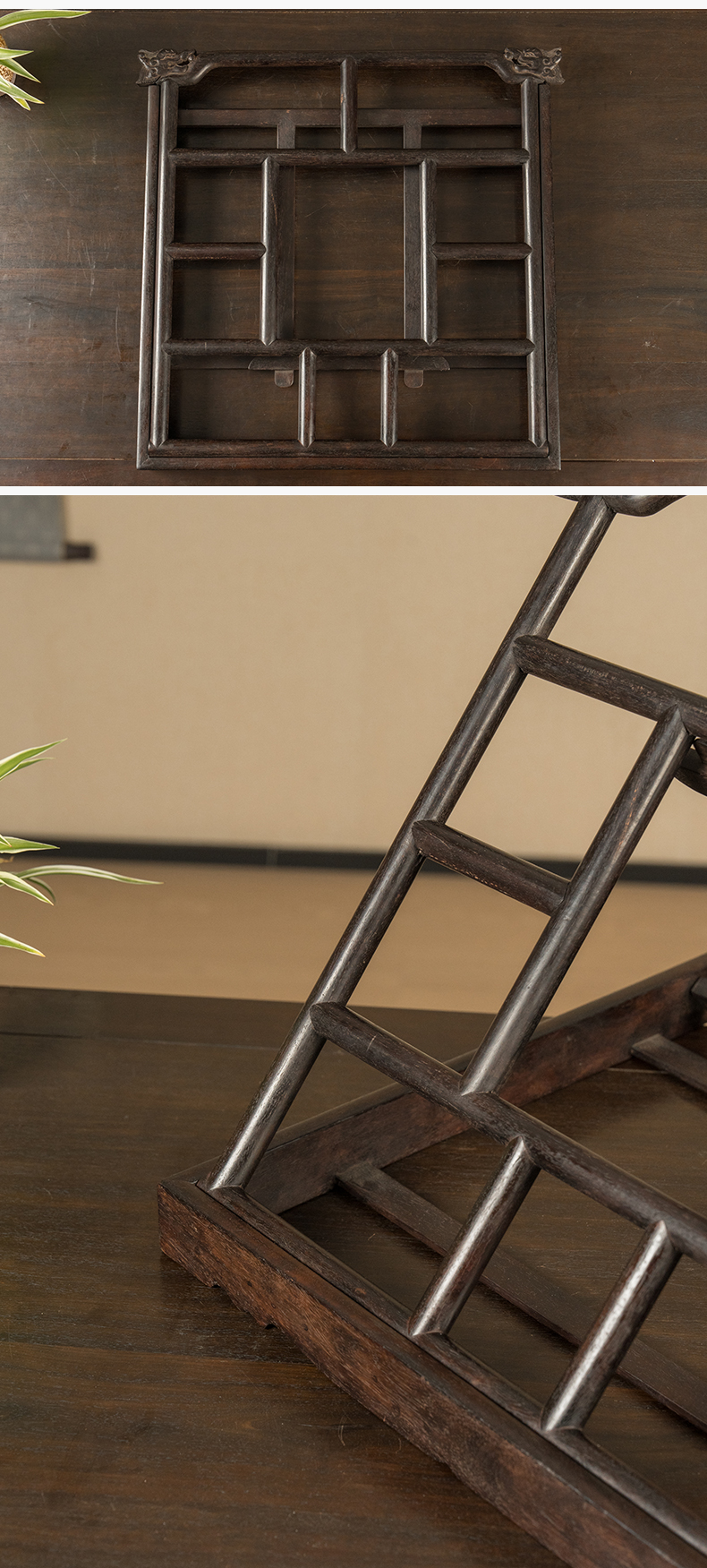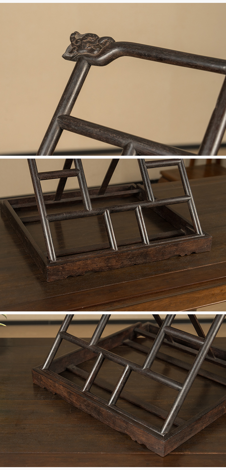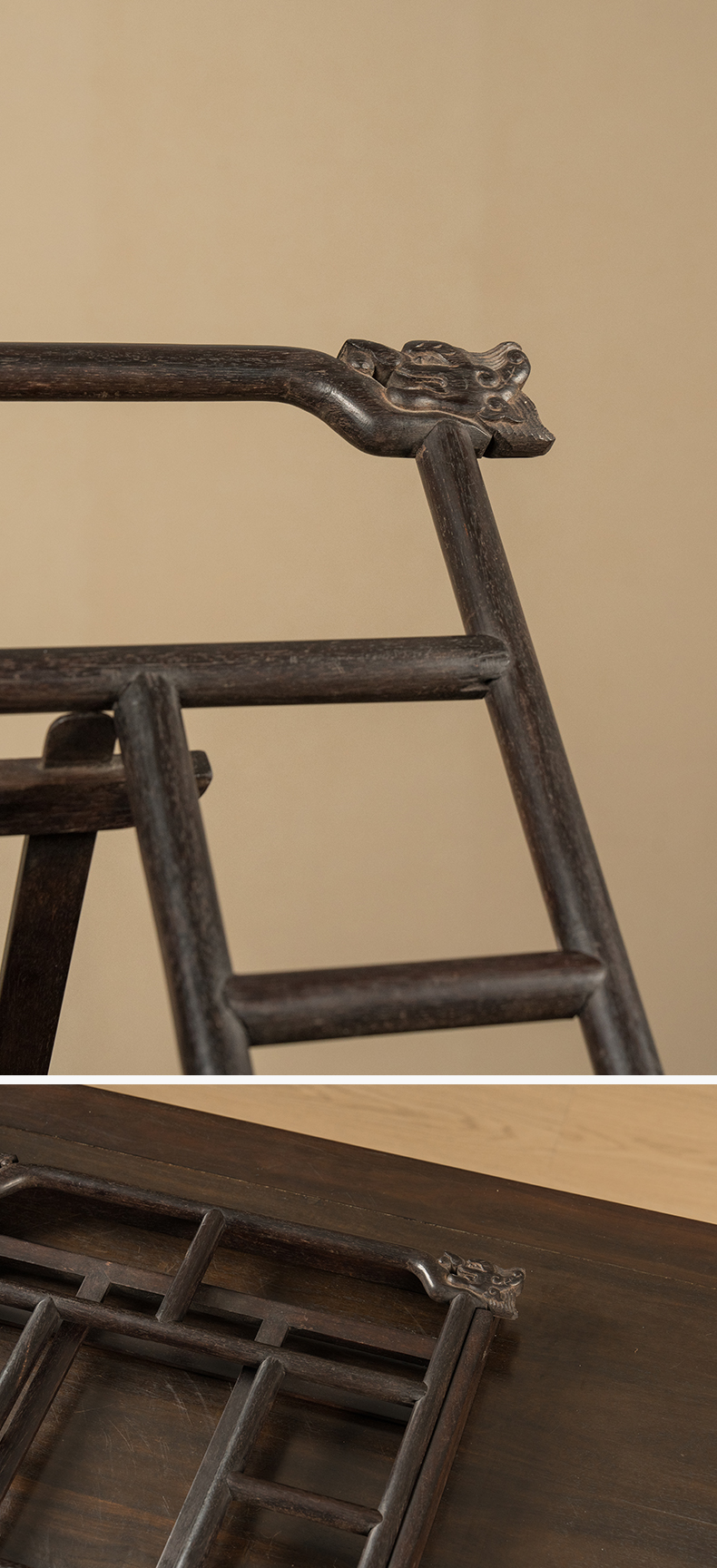 清 紫檀龙纹搭脑帖架