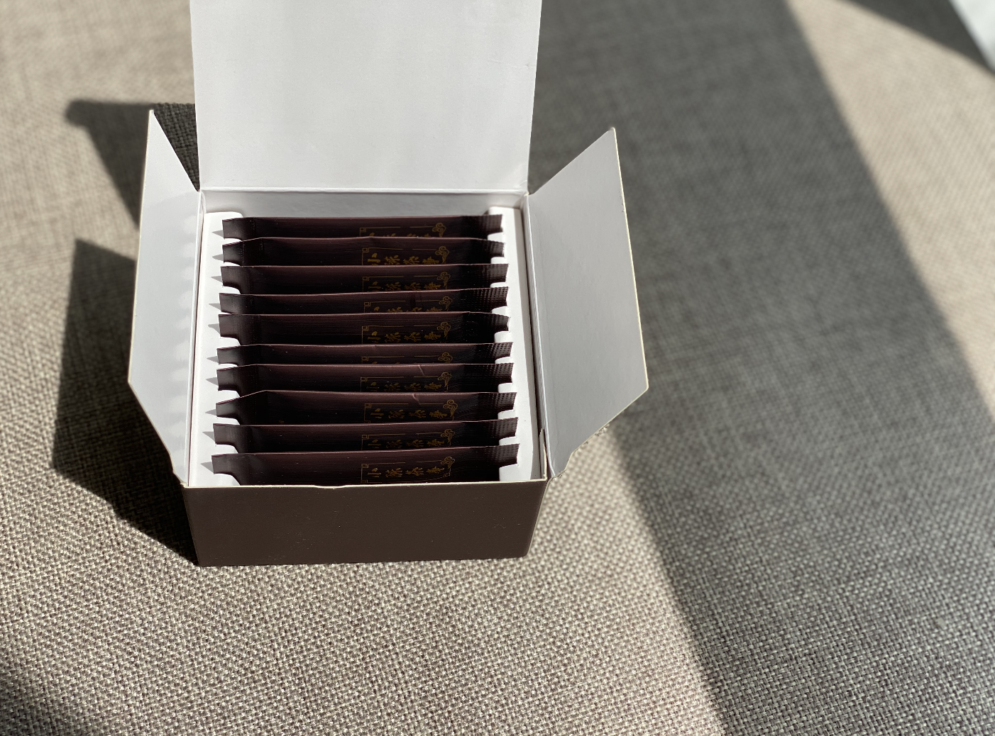 压得太宽了,杯口小,一整片无法投入,只能现场掰成两片,这就很尴尬——一片投入保温杯中,另一片怎么办?如果你是在机场,那掰下来的另一片,是扔掉,还是揣兜里?