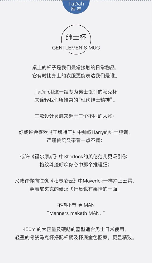 TaDah突然间 绅士杯 骨瓷马克杯 (三款可选)