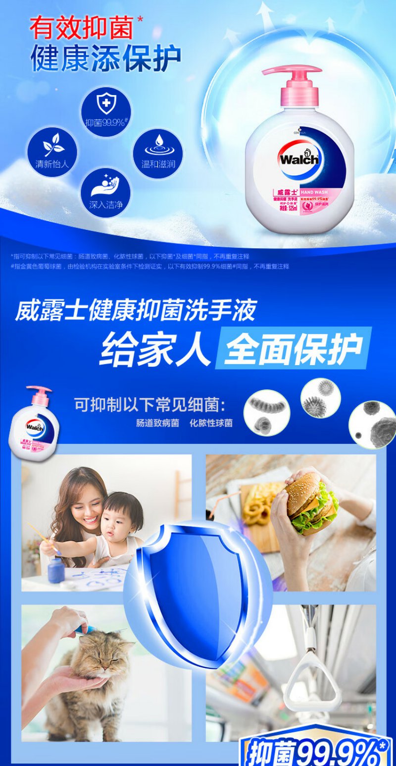 威露士洗手液健康呵护倍护滋润洗手液有效抑菌童成人家用补充袋装便携 倍护滋润525ml*1瓶