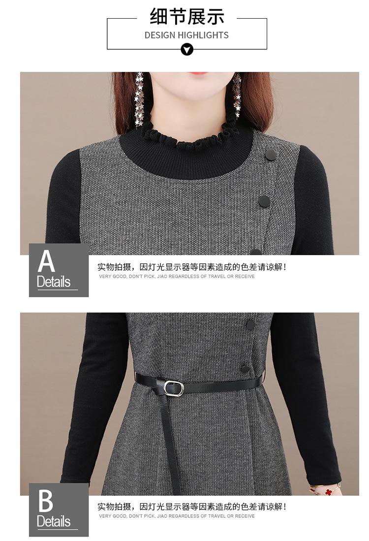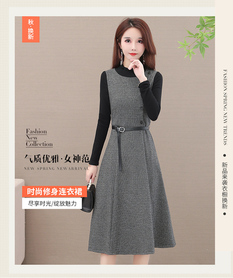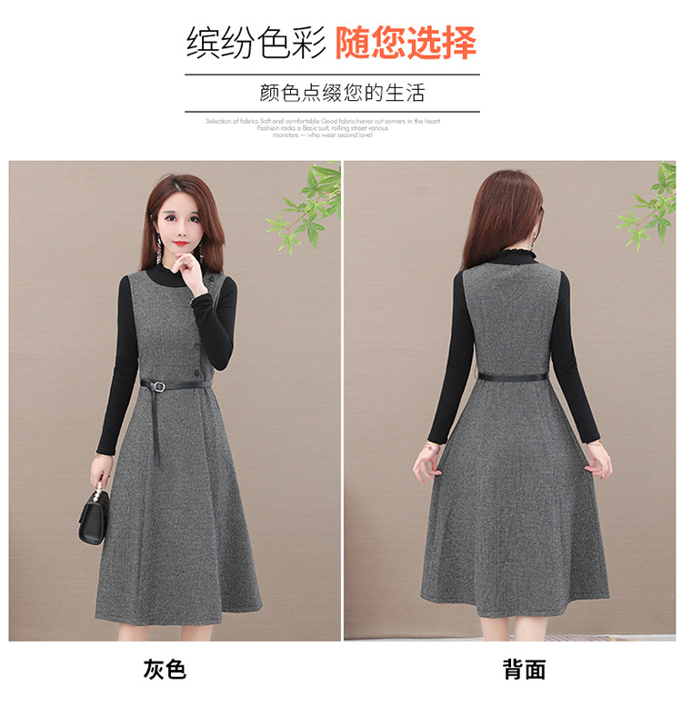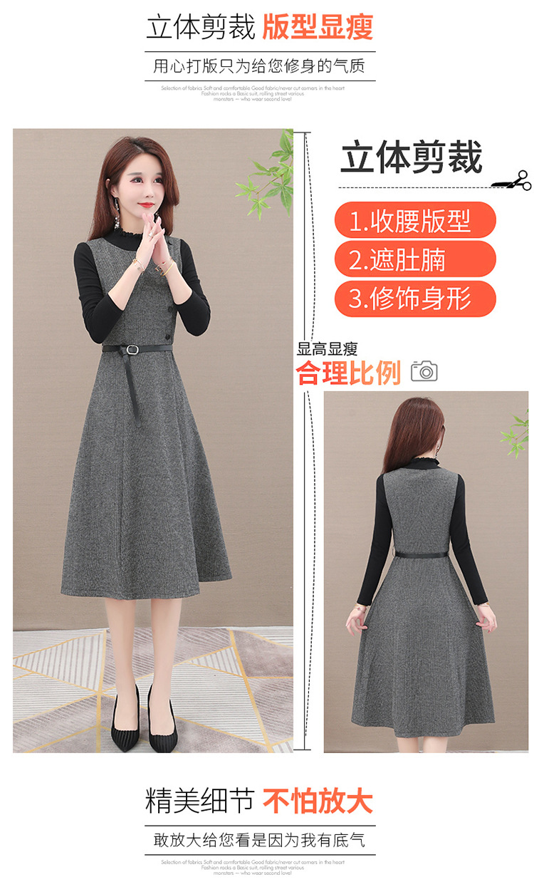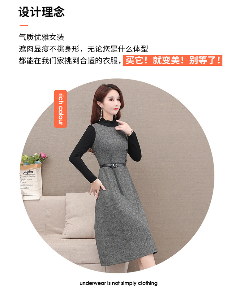 YWE-20ZAE839时尚加厚气质减龄长袖连衣裙女中长款过膝A字裙