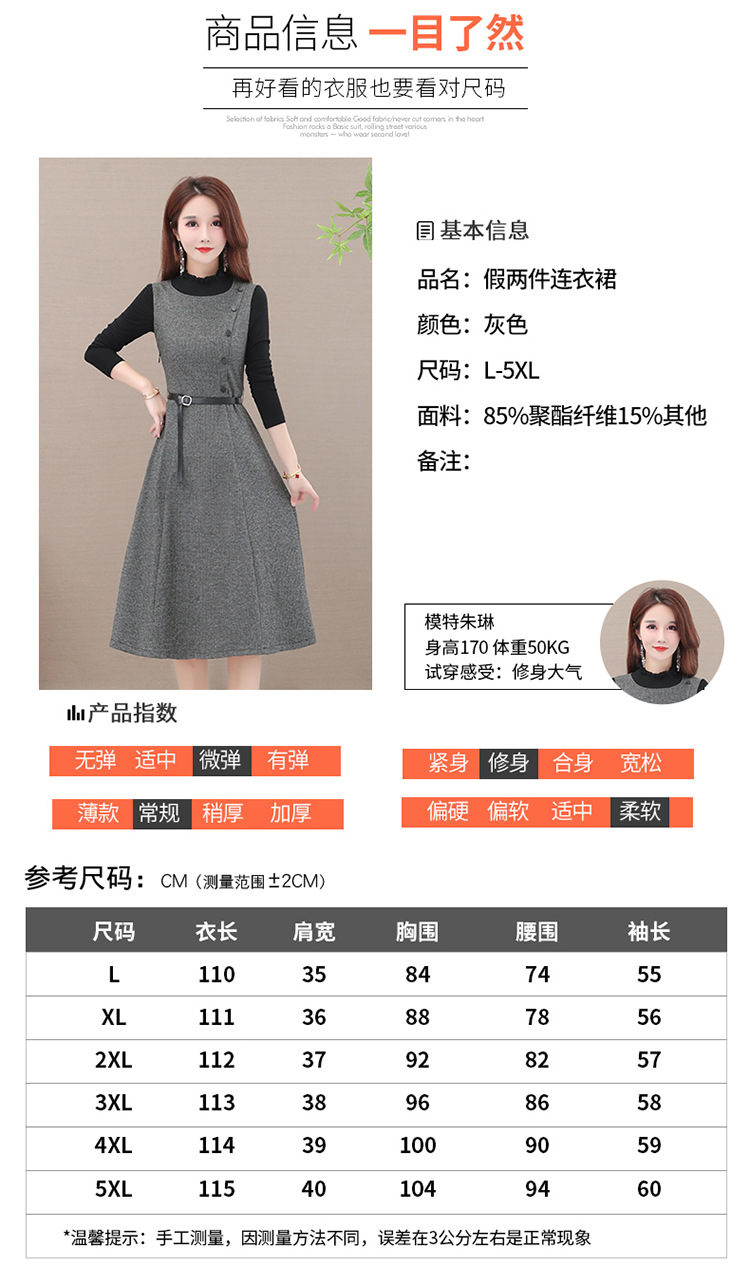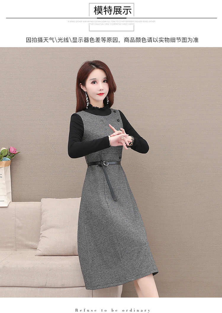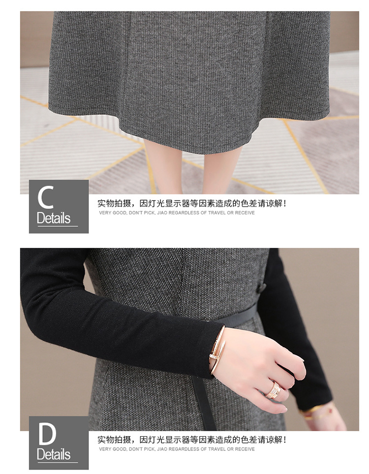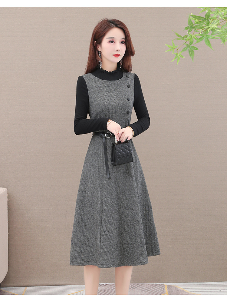 YWE-20ZAE839时尚加厚气质减龄长袖连衣裙女中长款过膝A字裙